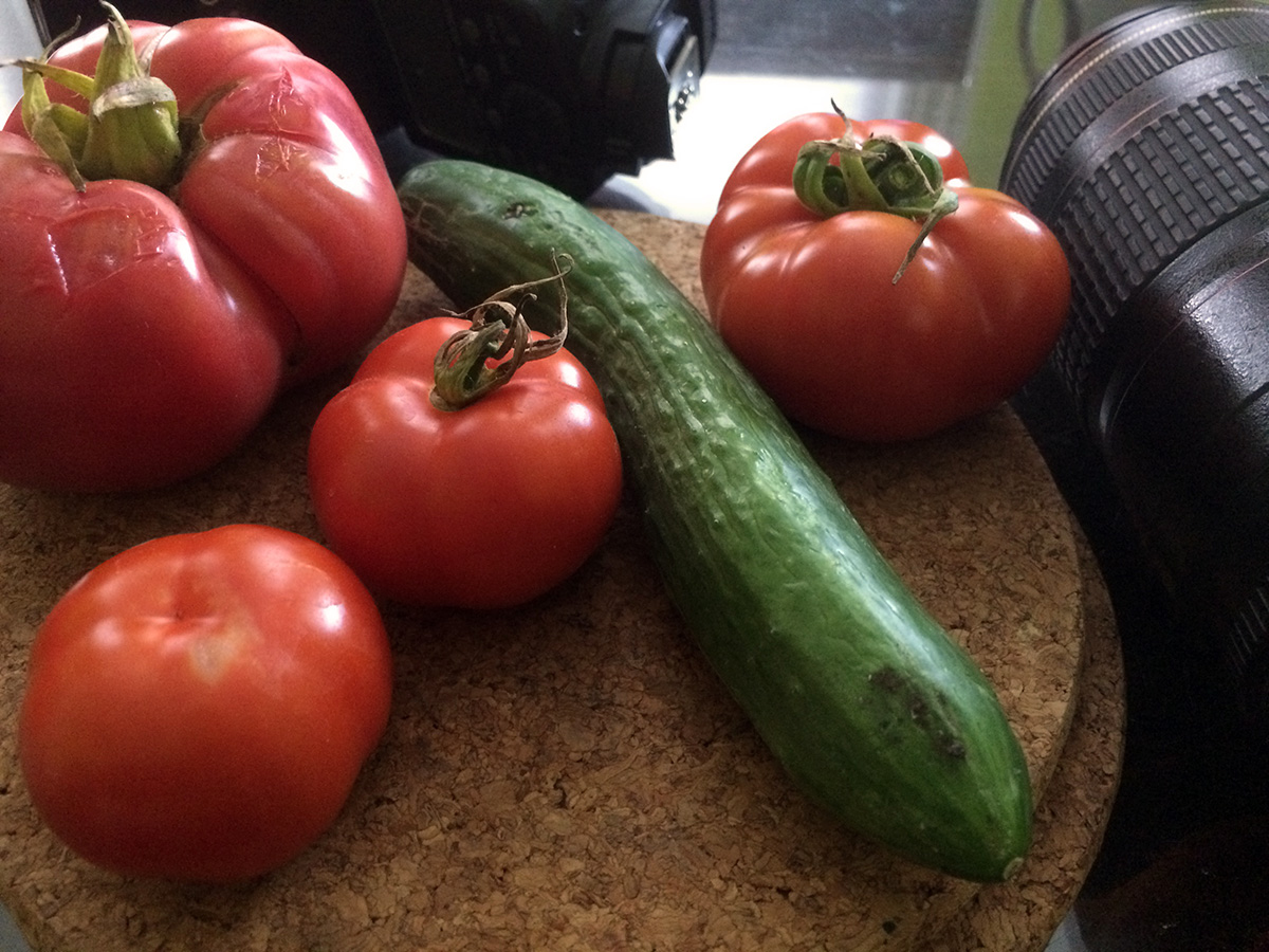 i packed the tomatoes and cucumber into a small cardboard box stuffed with leftover packing balloons and strapped it to the back seat of my motorcycle with bungie netting to bring to belmont since i'm not a big fan of tomatoes and my mother would find a better use for them.
