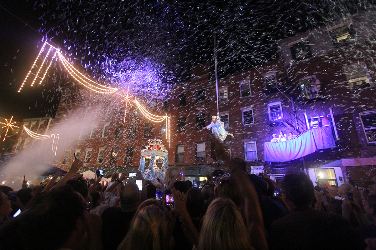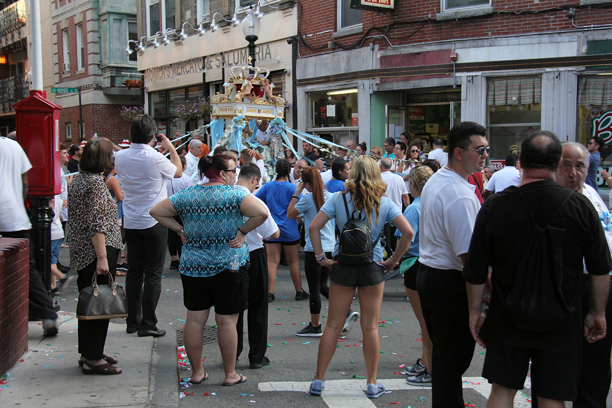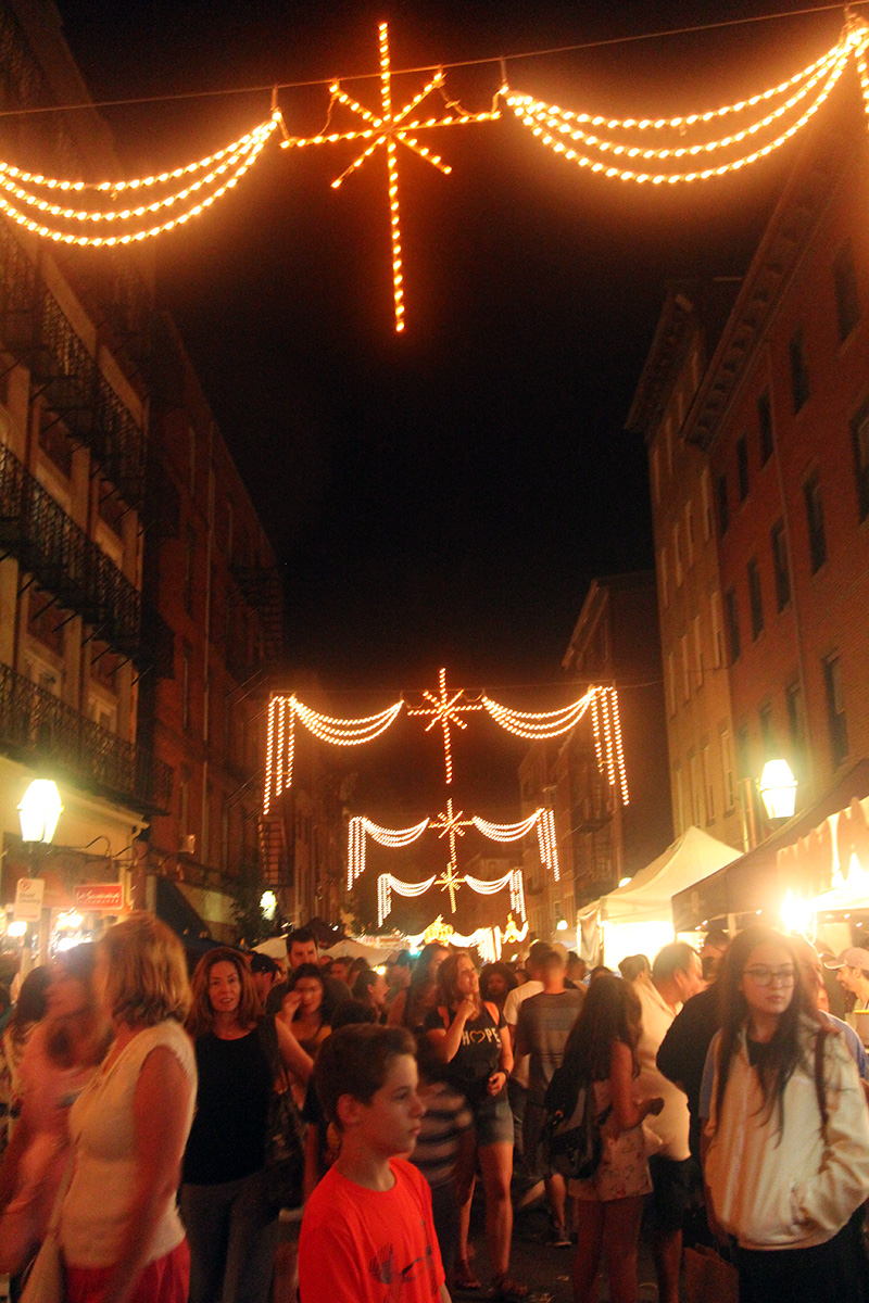 the last and first time i've ever successfully witnessed the fisherman's feast was 12 years ago when i came here with renata. i also came here with julie back in 2005 to catch the feast, but we came on the wrong night and only saw the food vendors and carnival games. from my notes i knew that the actual flying angel ceremony happens on north street, so i made my way there. i got there around 7:10pm. i looked up trying to find the guide wires until i finally spotted them. i found a good spot against the side of a wall and proceeded to wait for the next hour, as the area began to slowly get more crowded with people.