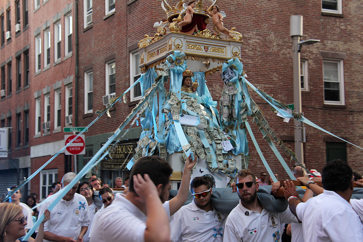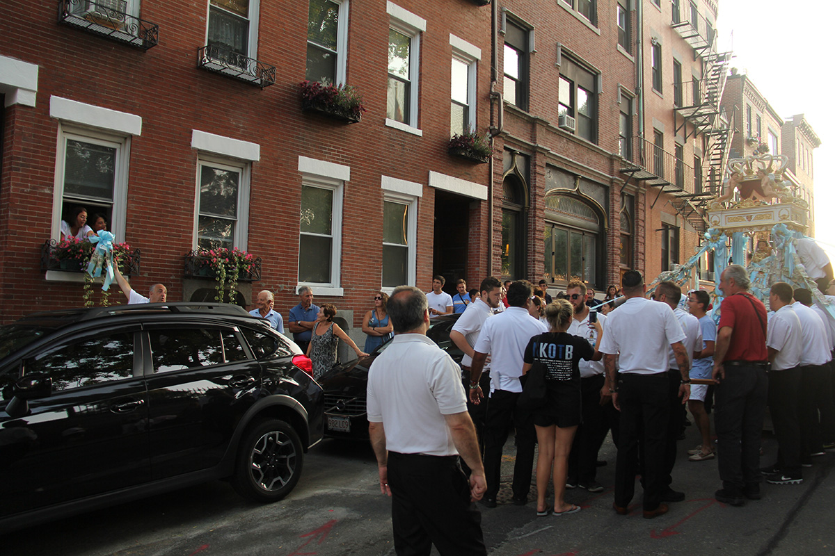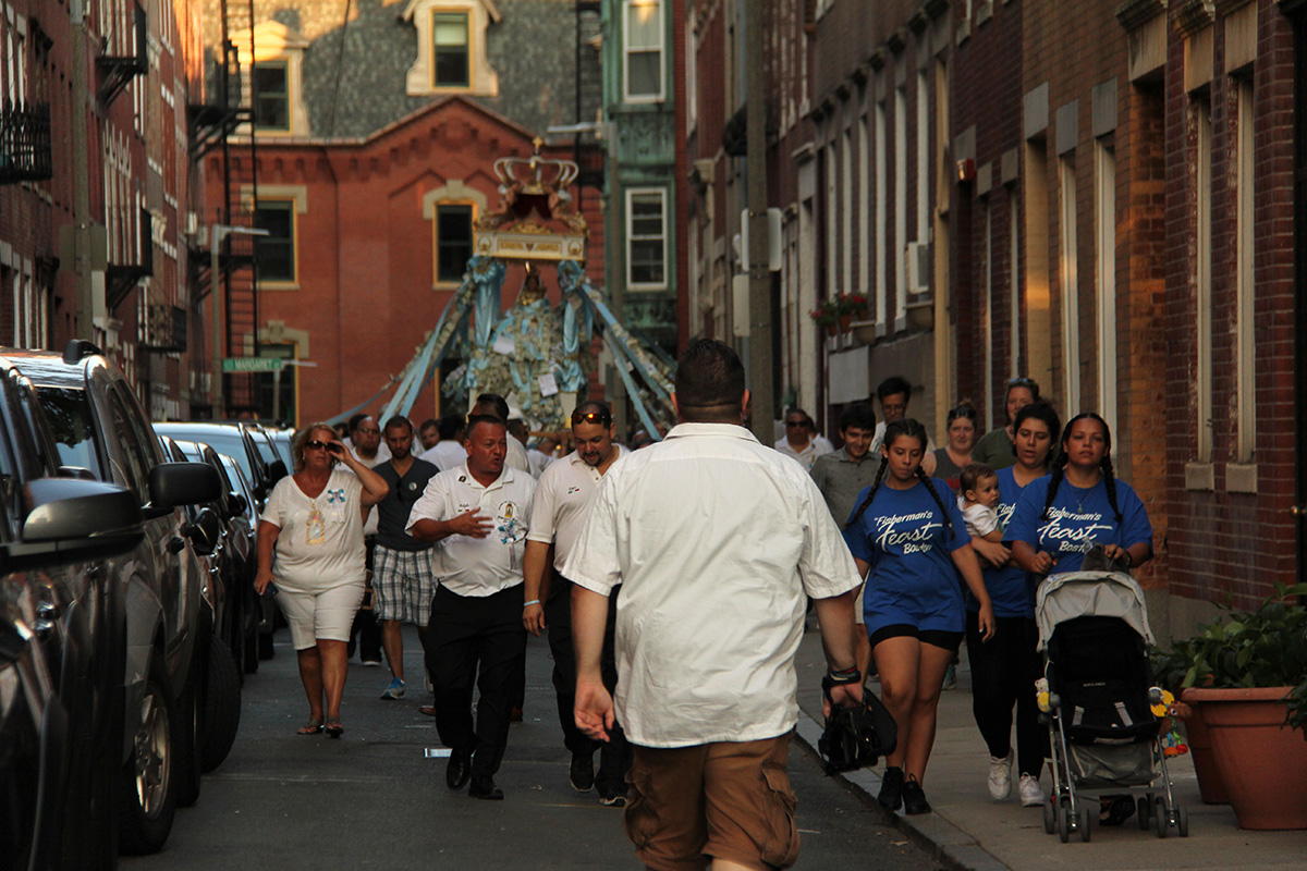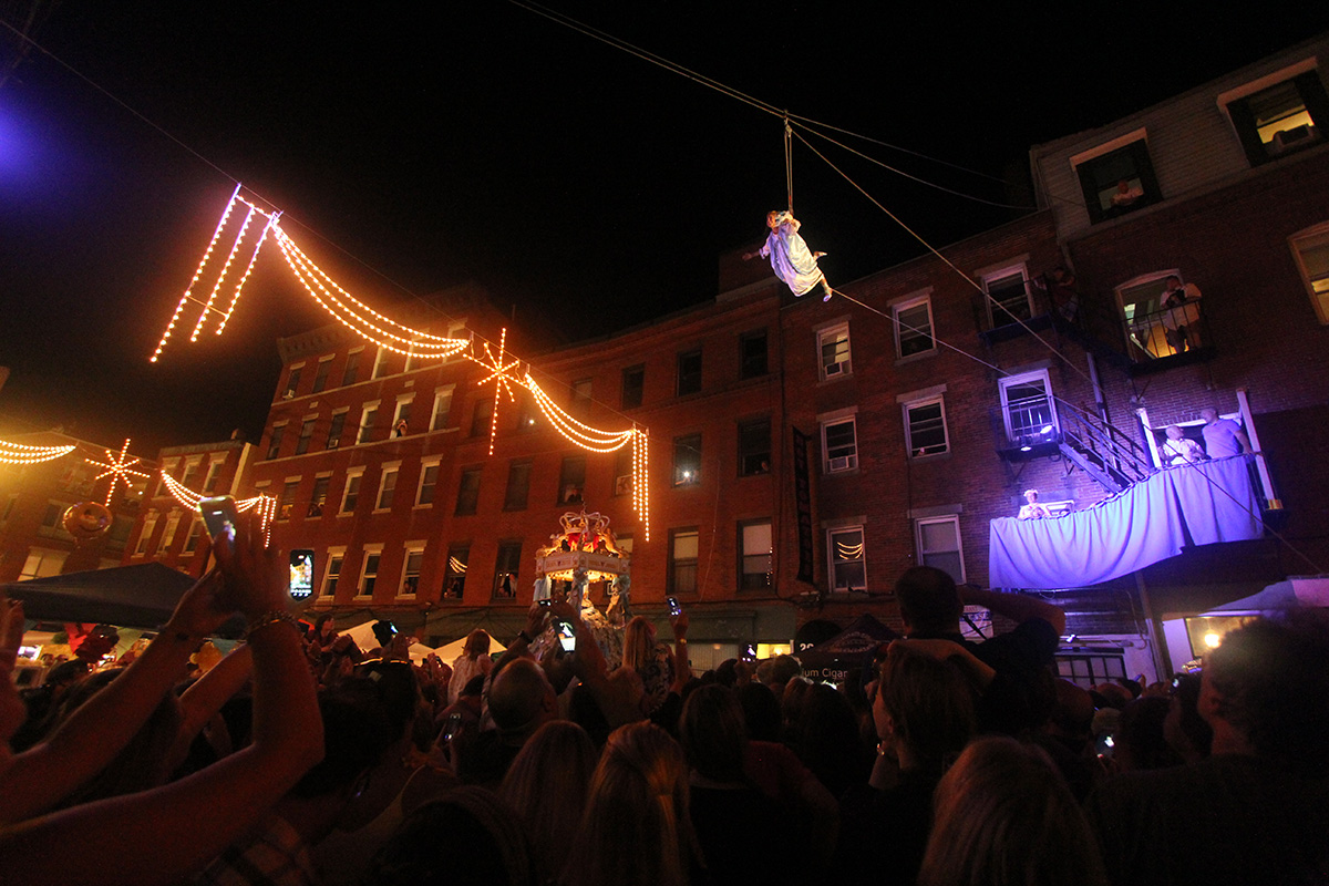the last and first time i've ever successfully witnessed the fisherman's feast was 12 years ago when i came here with renata. i also came here with julie back in 2005 to catch the feast, but we came on the wrong night and only saw the food vendors and carnival games. from my notes i knew that the actual flying angel ceremony happens on north street, so i made my way there. i got there around 7:10pm. i looked up trying to find the guide wires until i finally spotted them. i found a good spot against the side of a wall and proceeded to wait for the next hour, as the area began to slowly get more crowded with people.
