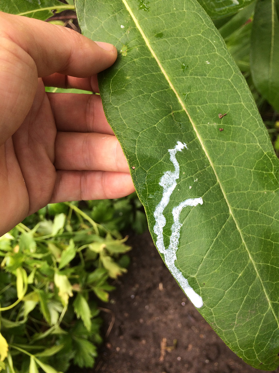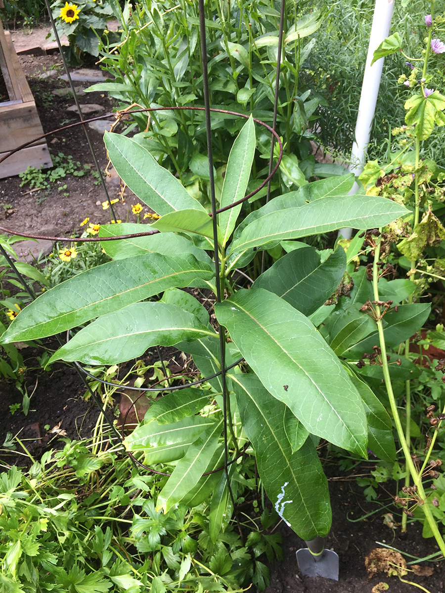 i haven't been to the community garden plot in 3 days so i was due for a visit. today i was reminded why milkweed is called that, because its sap bleeds out as a milky white liquid.