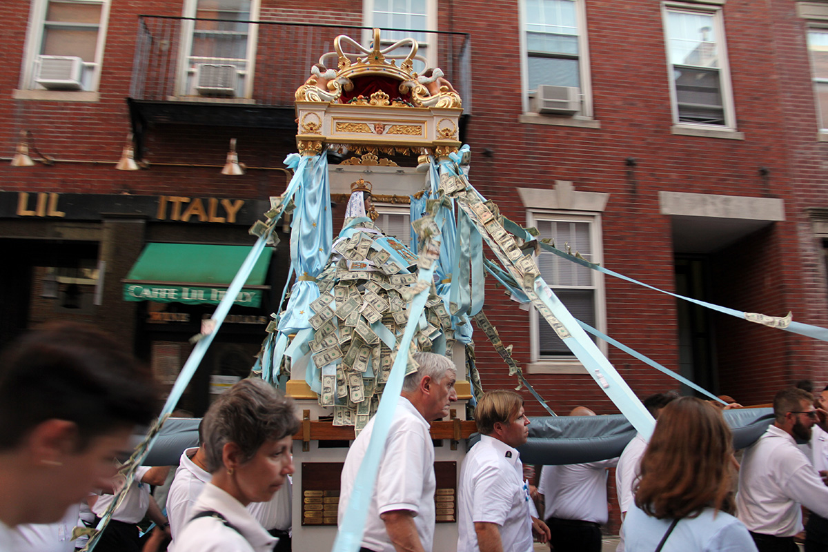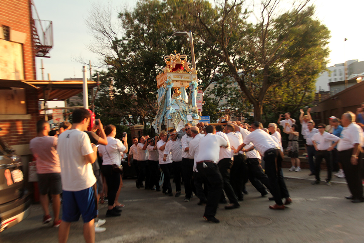 i arrived right when they were carrying the madonna shrine in a procession through the streets. i locked my bicycle to a pole and began snapping away, excited to witness something not often seen by most. i followed the procession on the bike, cutting through side streets, walking the bike through crowds, riding down the wrong way on one-way streets.