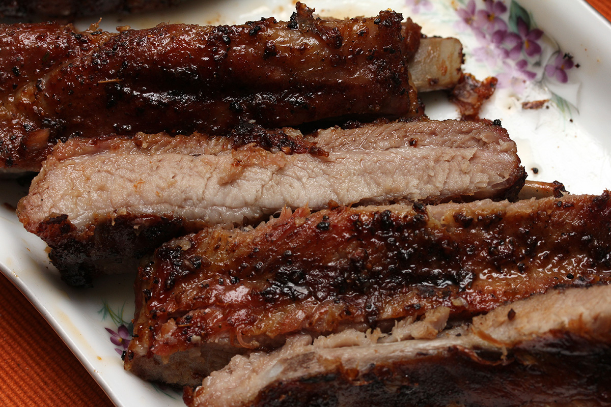 my parents were already grilling when i arrived in belmont by 4:30pm. earlier they'd gone on a supply run (costco, restaurant depot) and got two big slabs of st.louis seasoned dry rub ribs. they also sliced the monster zucchini that'd been growing in the garden and grilled some of that as well. for dessert we tried the manufactured flan they got from restaurant depot. it had a thick overly-sweet consistency, a texture that was dense like jello or congealed fat. there was also a bitter aftertaste, a wholly unpleasant experience, compared to the real flan i make.