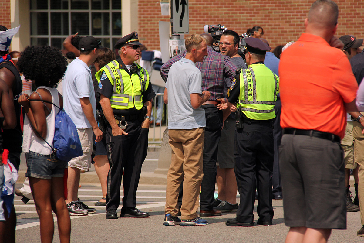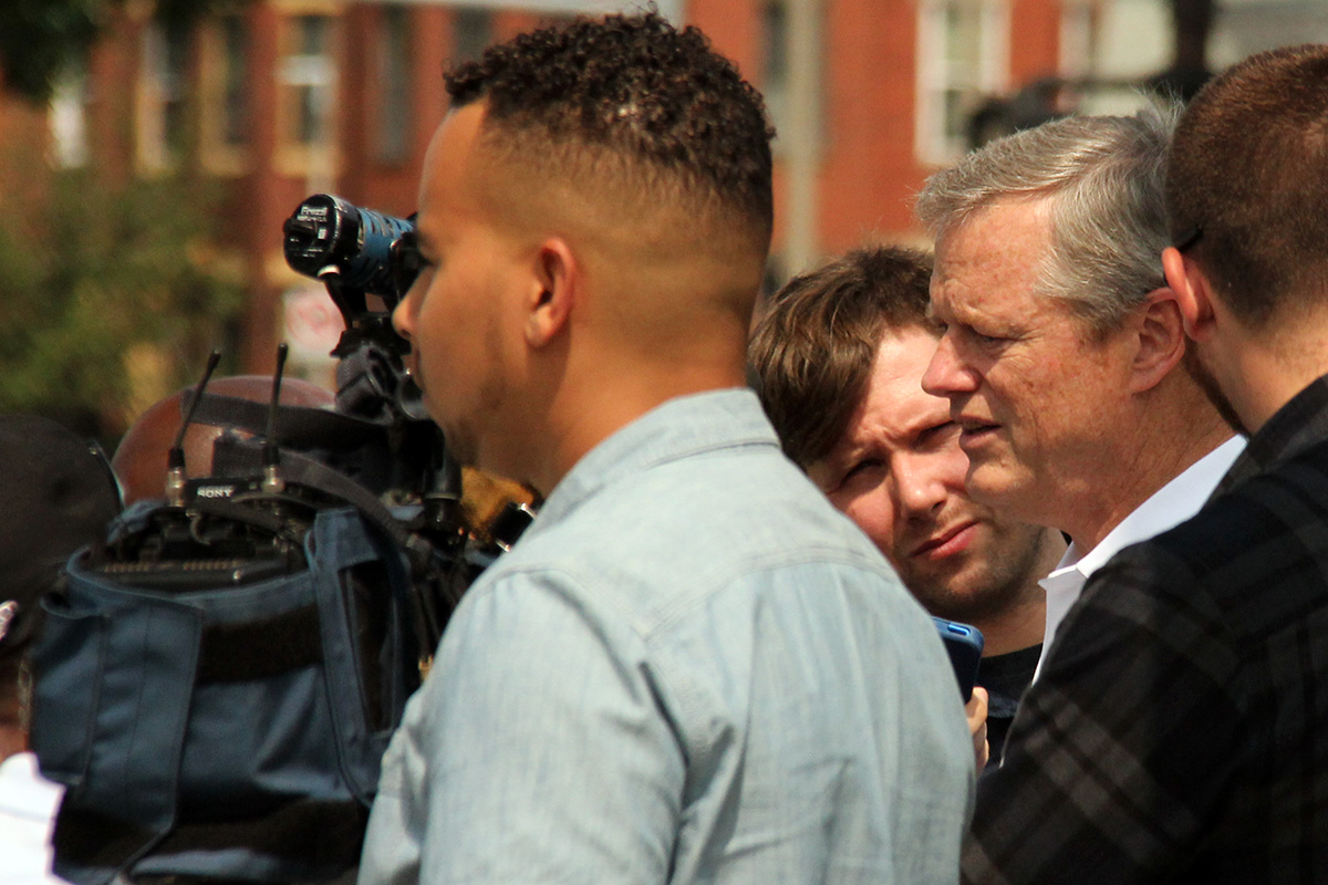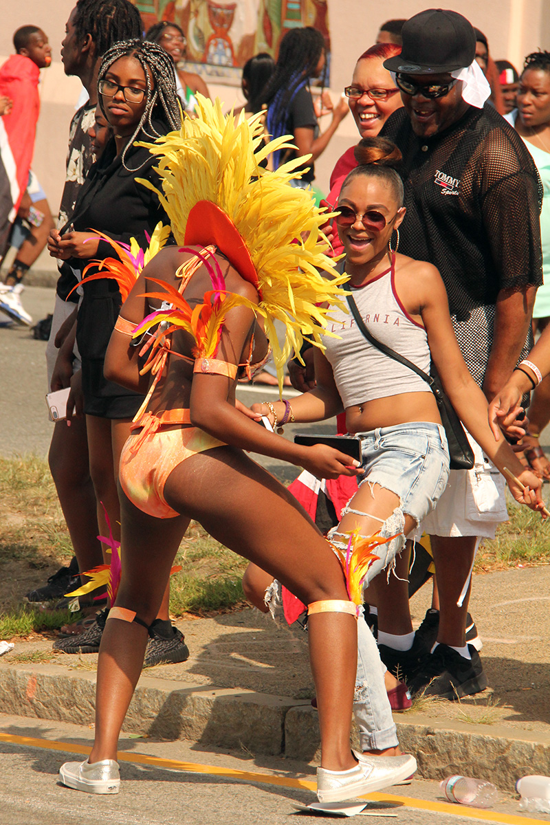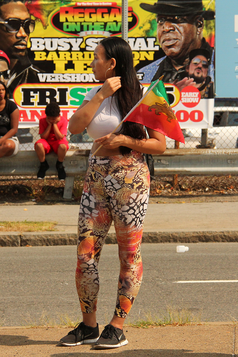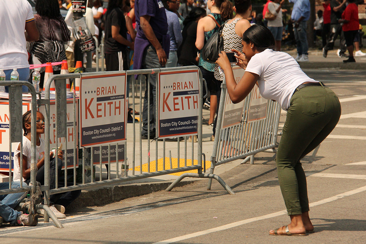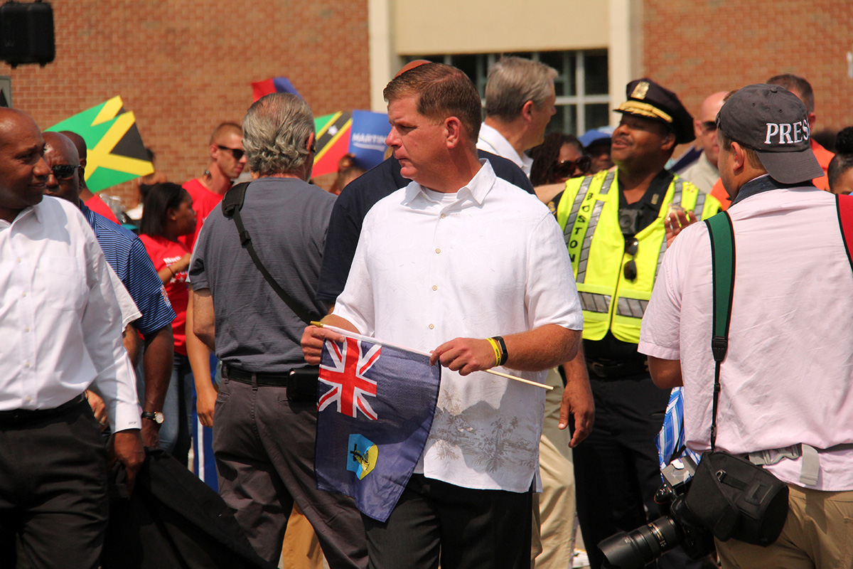 i spotted that grizzled old press photographer i see all the time; in fact, i saw him last weekend at the fisherman's feast. i see him all the time but if he recognized me he made no acknowledgement and neither did i. close to 1pm a convoy of black SUV's arrived, where mayor walsh and the police commissioner showed up. later governor baker appeared as well (i've never seen the governor at any caribbean parades) but left as soon as the parade started.