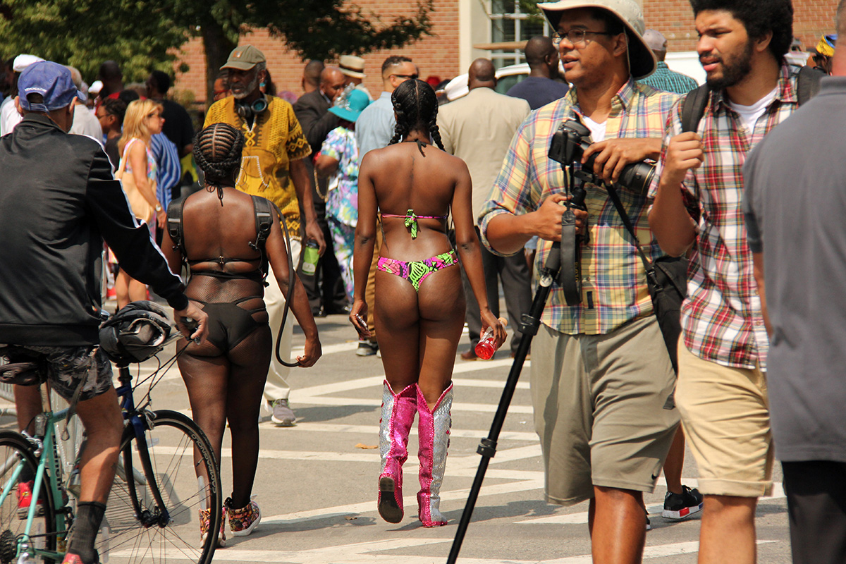 i arrived a bit before noontime, parking the motorcycle at the intersection of marcella and washington street. MLK jr boulevard is the usual staging ground, but when i arrived it was still mostly empty, just a few parked semi trucks with people slowly preparing their costumes. in fact, the street wasn't even closed, and there was car traffic in both directions, which made me nervous. i walked down to warren street and found some shade in the shadow of a building. it would appear that the parade wouldn't start until 1pm, and knowing what i know about these parades, it will most likely begin even later.