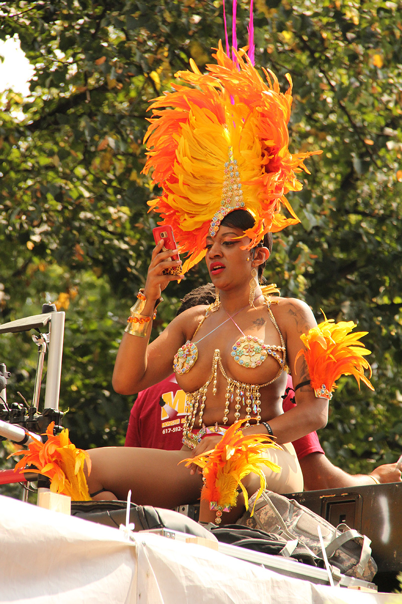 today i was going to the boston caribbean parade, something i look forward to every year. for some reason there are two caribbean parades, one in boston, one in cambridge. they used to be on the same weekend, but now they're spaced two weeks apart, the boston one happening before labor day, the cambridge one happening after. in my opinion, the boston parade is the better one, with crazier processions, and more photo opps.