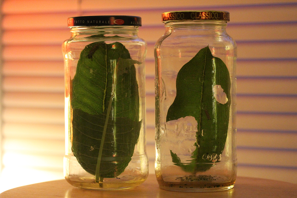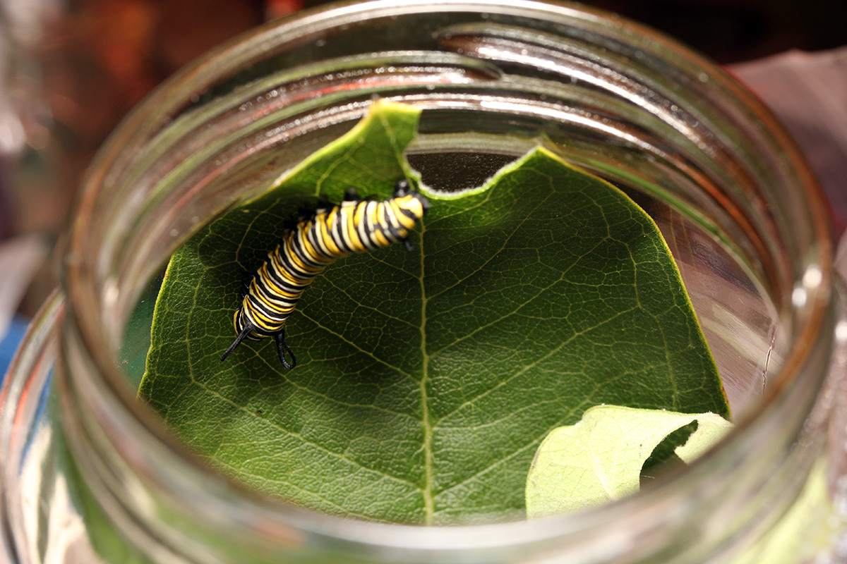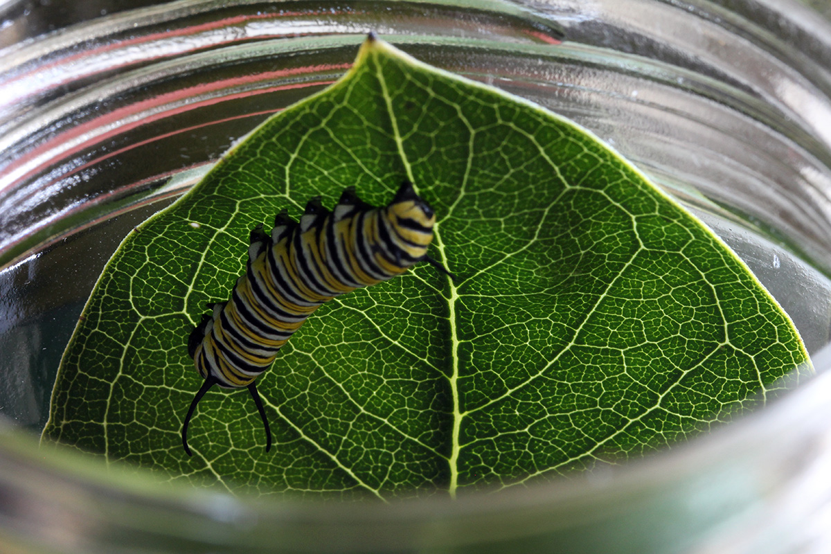 i wasn't here to see catone change into the 5th instar but i knew it happened because it started feeding again. it still hadn't fully transformed because its long antennae were still unfurled.