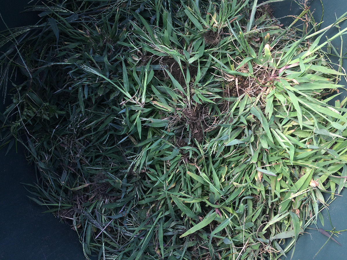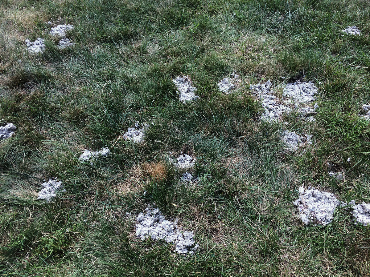 i dug out a bunch of crabgrass in my parents' backyard and filled them back up with grass patch, which is a mixture of grass seeds, newspaper pulp, and fertilizer. it says it takes just a week for the grass to germinate. the wetted down patches resemble dog puke.
