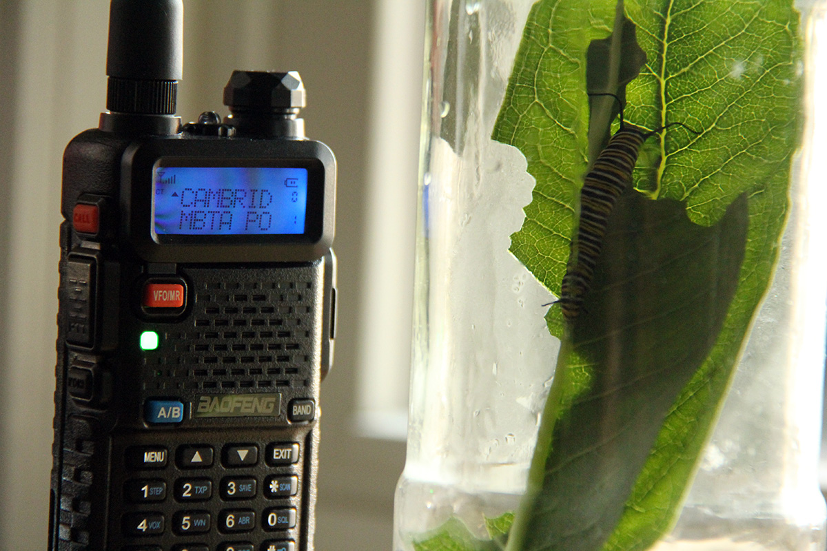 i played around with the baofeng radio, listening to the cambridge police radio (470.31250 MHz). i can see how this could be addicting, like riding along with the police department, real crime happening in real time. although to be honest, most of the chatter i heard today concerned vehicles blocking driveways or security alarms going off. there was one MVA, which i learned stands for "motor vehicle accident." i figured out how to use the frequency scan function. i came across an open channel that turned out to be the MBTA police frequency (470.66250 MHz). there was a homeless man threatening to urinate on some T passengers at south station. elsewhere on the lowell commuter line, teenagers were playing chicken with ongoing trains. i also discovered that those mysterious tiny 75's and 25's and 5's are actually the end frequency numbers, not mysteriously assigned channel numbers.