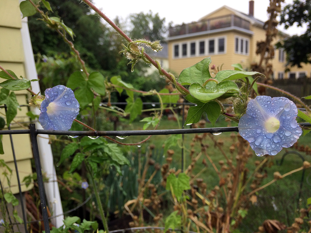as it was a grey day, i actually saw some wild morning glories still in bloom in the backyard. the larger domesticated morning glories were already faded.