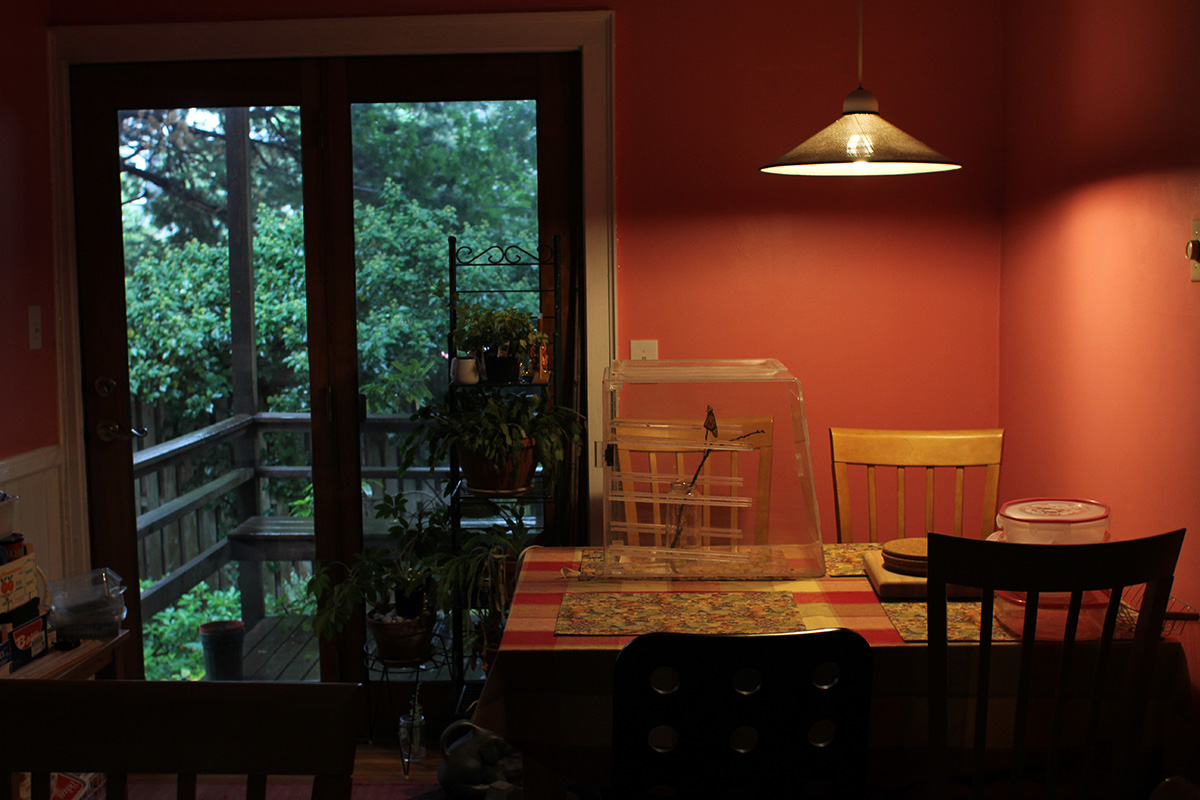 i then spent the next 2 hours photographing the final stage of the chrysalis. it wasn't easy to get a good exposure as the pupa was completely black at this point with orange and white spots on the visible wings. at one point i moved my whole photo setup into the living room as it was brighter than the kitchen. i accidentally knocked the lid off the perch of jars, the chrysalis clattering onto the coffee table. had my nightmare come true? i quickly picked up the lid with chrysalis, inspecting it for damage. i saw none. i then moved everything back into the kitchen was it was easy to work from the countertop. that's when i saw it: the papery clear shell on one side of the chrysalis was broken. frantically i looked for some of additional damages. the chrysalis wasn't oozing any liquids, which was a good sign. other than the shell - which was due to come off at any moment now - the butterfly seemed fine. but it did leave me worried, that i possibly killed another monarch butterfly.