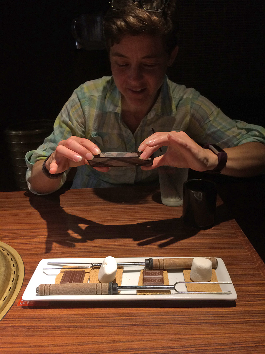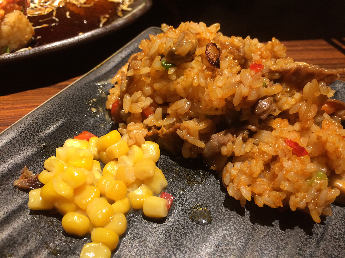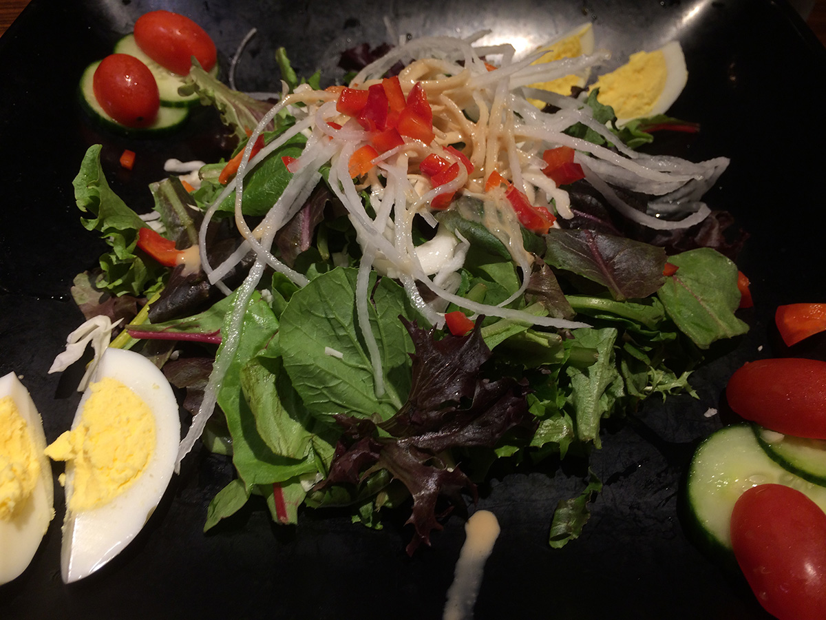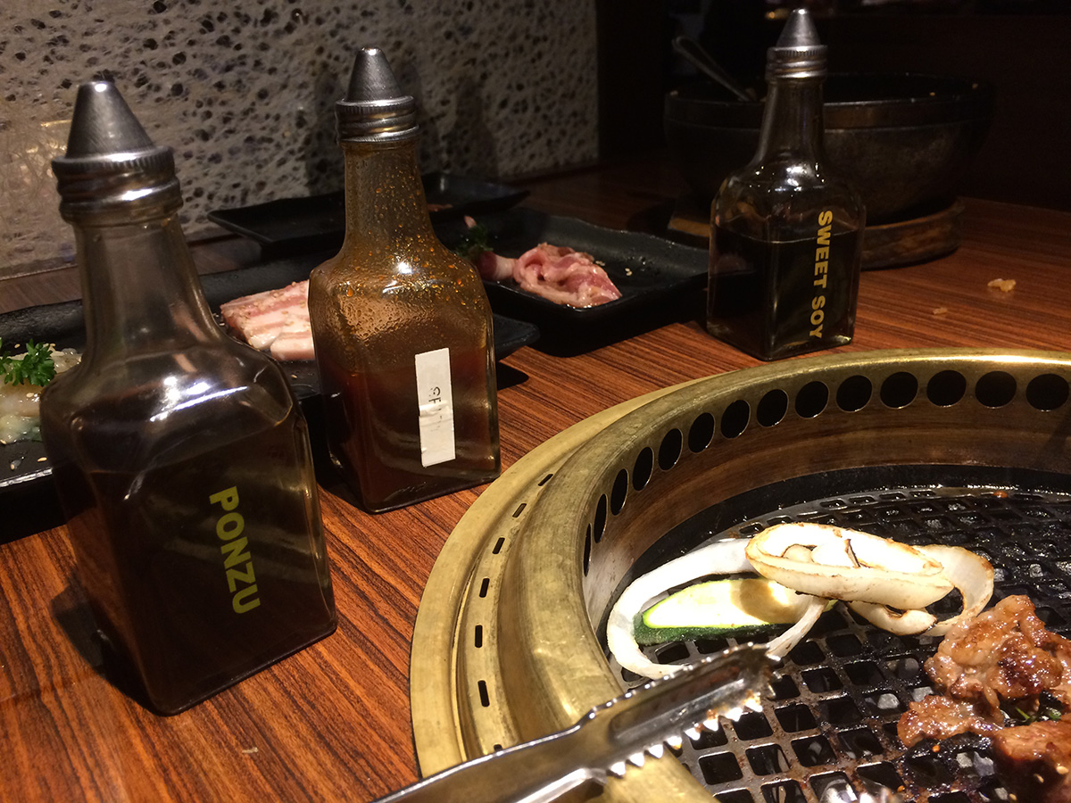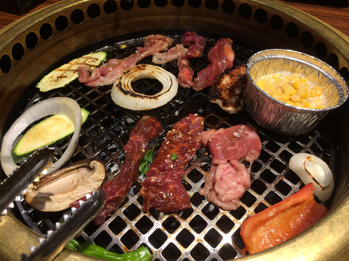 we ended up going to gyu-kaku for dinner. it was pretty packed with a young crowd. it didn't seem like we'd be able to get a table at first but the hostess asked us if we'd be able to finish in 1-1/2 hours and we said yes so we managed to get a corner booth. though not as much a bargain compared to their lunch specials, gyu-kaku did have some worthwhile course specials. we ended up getting the "harvard" special for 2 people which included: large gyu-kaku salad, 2 miso soup, spicy tuna volcano, steamed chili dumplings, sukiyaki bibimbap, toro beef sweet soy, pork belly white soy, shrimp garlic, assorted veggies, harami miso skirt steak, and some s'mores for dessert. all for the bargain price of $52. (japanese/korean barbecue usually is much more expensive).
