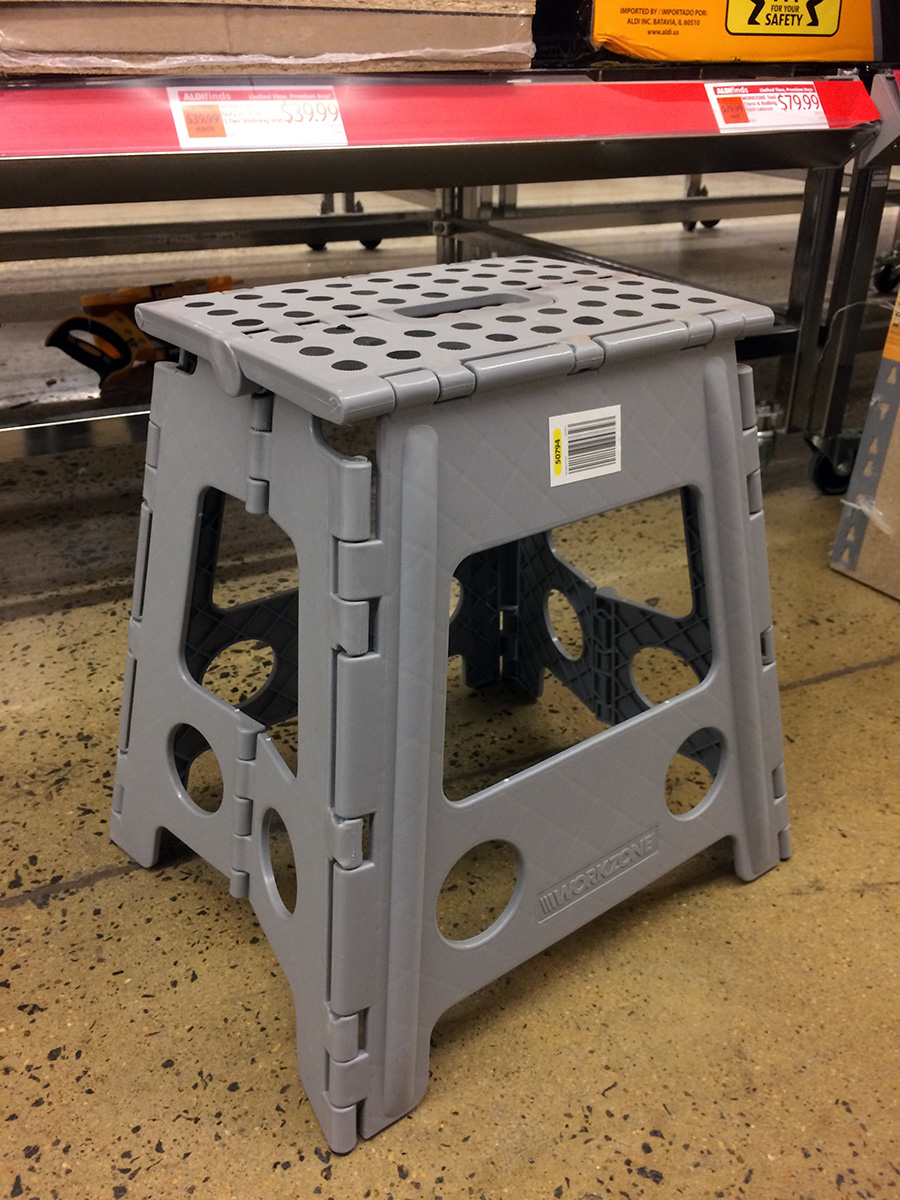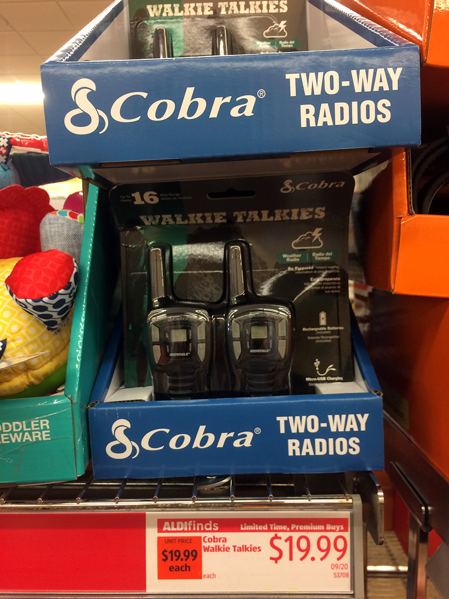 i went next door to aldi to look around. this was just my second time here, the first time being back in may. i realized aldi is so cheap because they carry mostly off-brand foods, names i don't recognize. most of the people shopping there were senior citizens, which is about the only people who can out in the middle of the afternoon. they sold a pair of cobra two-way radios for $19.99, the exact same ones my father salvaged and manage to bring back to life. they also had a collapsible footstool for $5.99 that i was interested in getting but decided to think about it bit. i finally left with a bag of red grapes ($2.98), a roll of peppered salami ($3.79), and some cool mints (99¢).