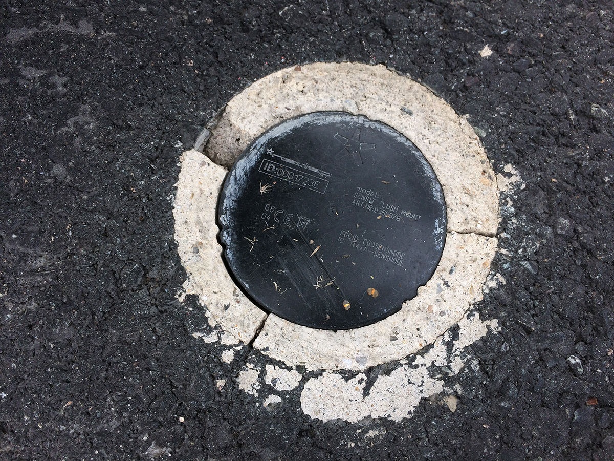 out in the parking lot i noticed what looked to be the round end of a plastic container stuck into the pavement.