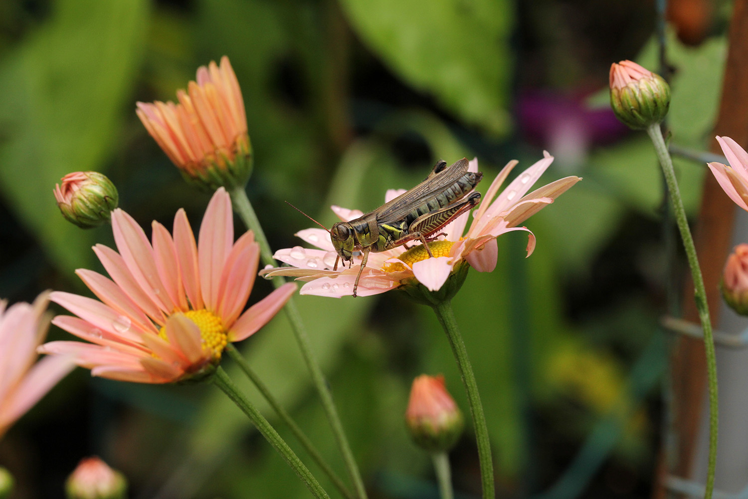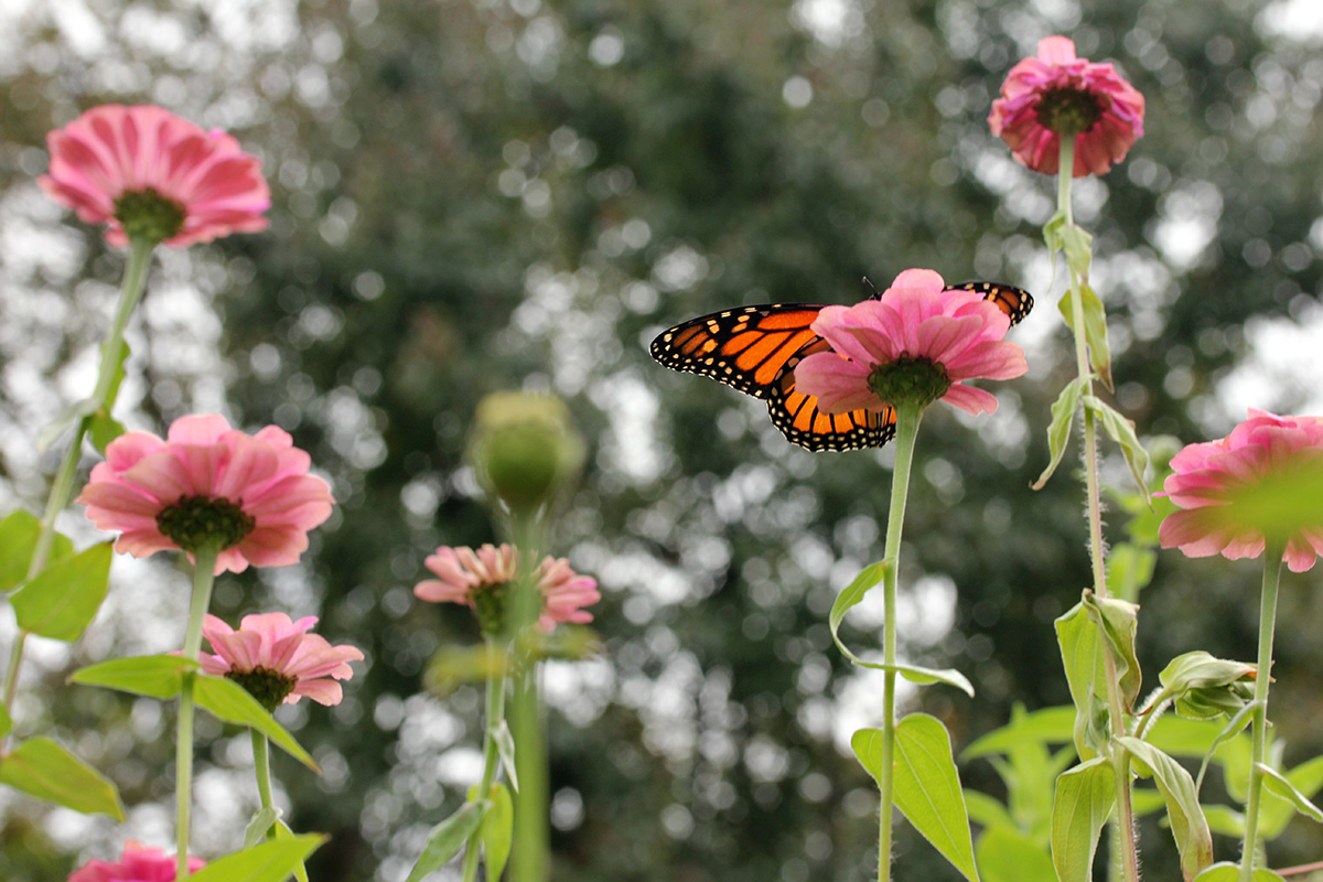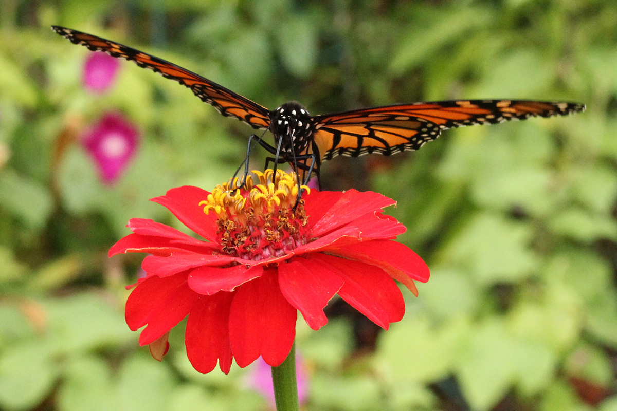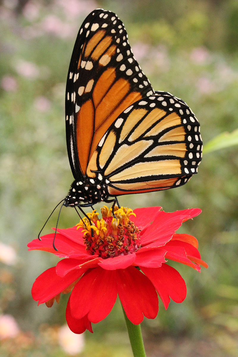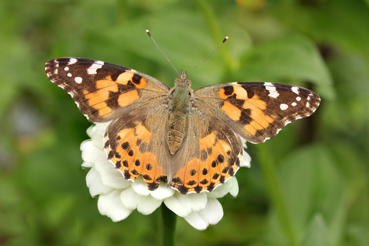 elsewhere, butterflies were busy feeding now that the rain had stopped. there was a monarch taking advantage of the numerous garden flowers. it seems like all the monarchs i've seen have been females, and this one was no different. i see them a lot this season, which hopefully is sign of population rebound. there were also a few painted ladies (Vanessa cardui, the cosmoplitan, not the american version virginiensis). i find them rather dull but the prettiest part of the painted lady is the underside, where there's a flourish of blue and green eyespots and patches of peach on the upperwings. i noticed the monarch feed with wings closed, but the painted lady preferred to feed with wings opened.