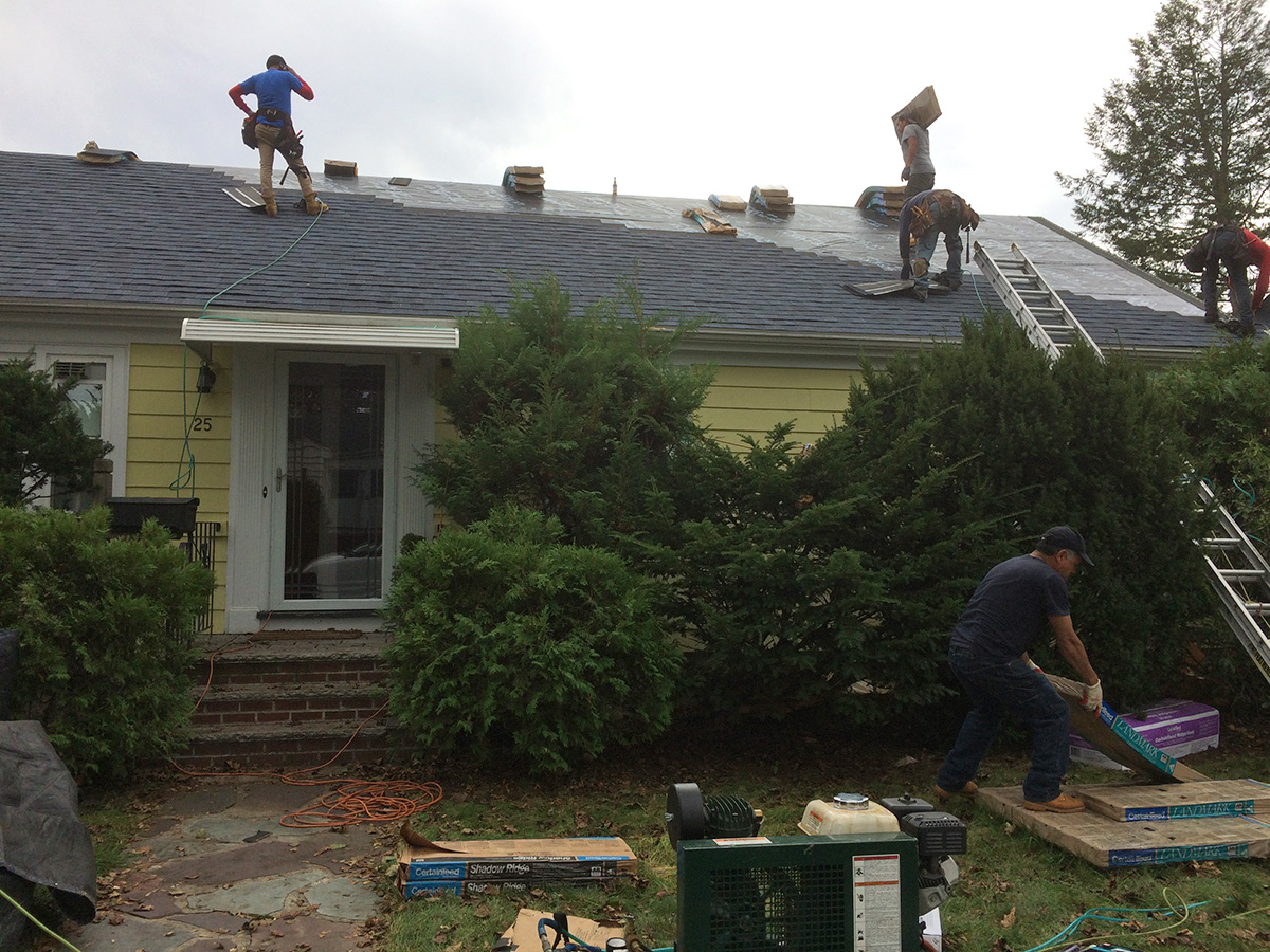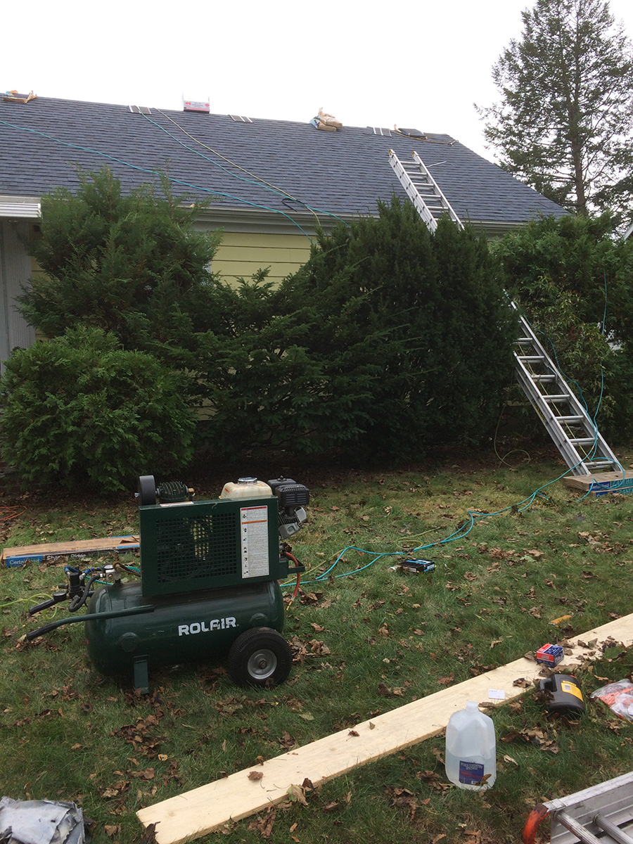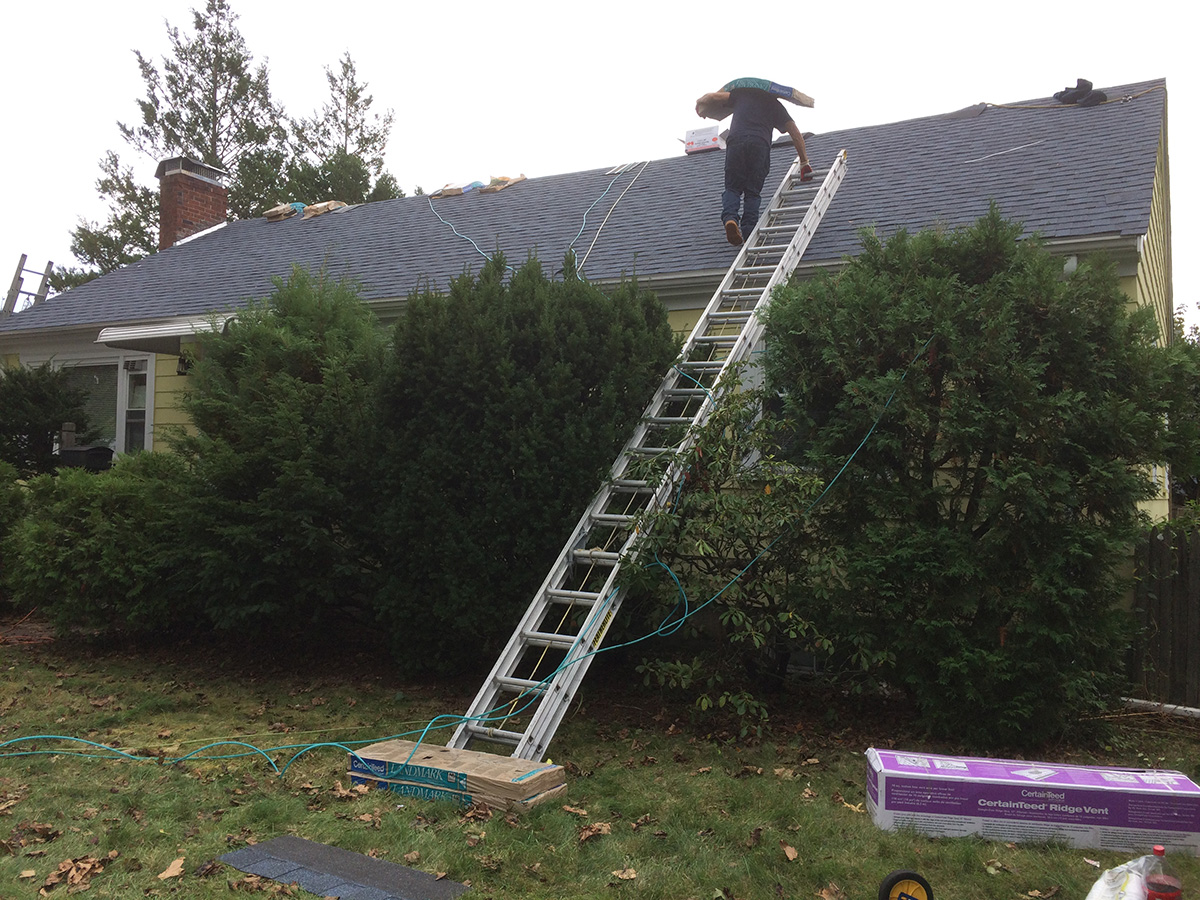 by 3pm they were mostly done. one worker was up on the top of the roof installing the shingle covered ridge vent. the manager came by one last time to pick up the check. one of the neighbors came by to admire the new roof and asked me how much it cost as he needed to replace his roof as well (35+ years). the workers spent the next hour cleaning up, including going around the yard with a magnetic wheeled sweeper to pick up any loose nails (mostly nails from the old shingles). they finally left close to 4pm, after working nearly 9 hours.