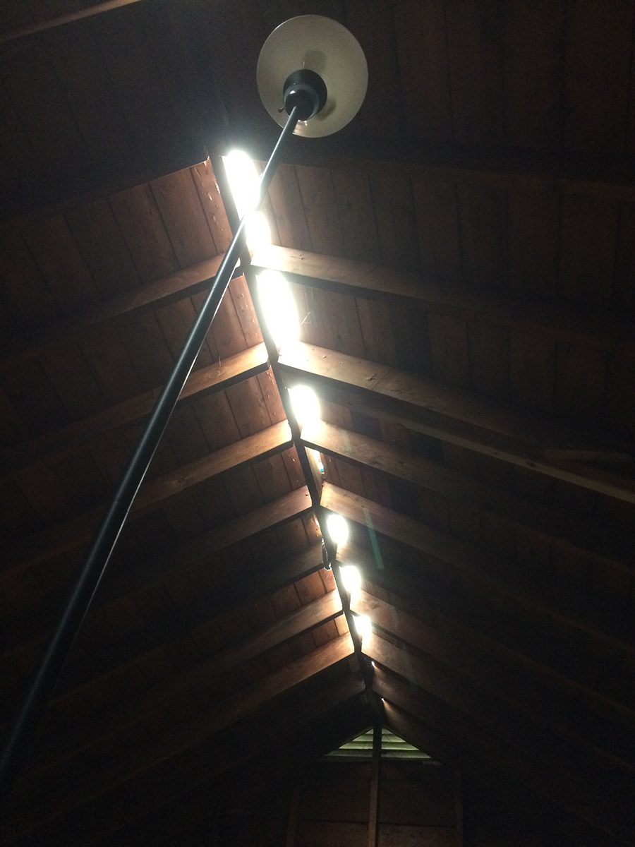 my father came back home around noontime. i forgot to bring my power cord so only had a limited amount of hours on my macbook pro so i was being sparing with my computer use. the sun out for a little bit, and for a while the temperature felt warmer than the actual 59°F. one of the workers (the youngest one) asked me if he could use the microwave. i brought him inside where he heated some central america dish of red sausages, rice, and a puffy white arepa. it smelled pretty good and i was tempted to ask him what it was but didn't want him to feel pressure to share. my father made some pork-filled fish balls soup for lunch. i found out why my father picked blue as the shingle color, because he thought it'd match the blue of the solar panels. unfortunately he forgot that LG panels are actually black.