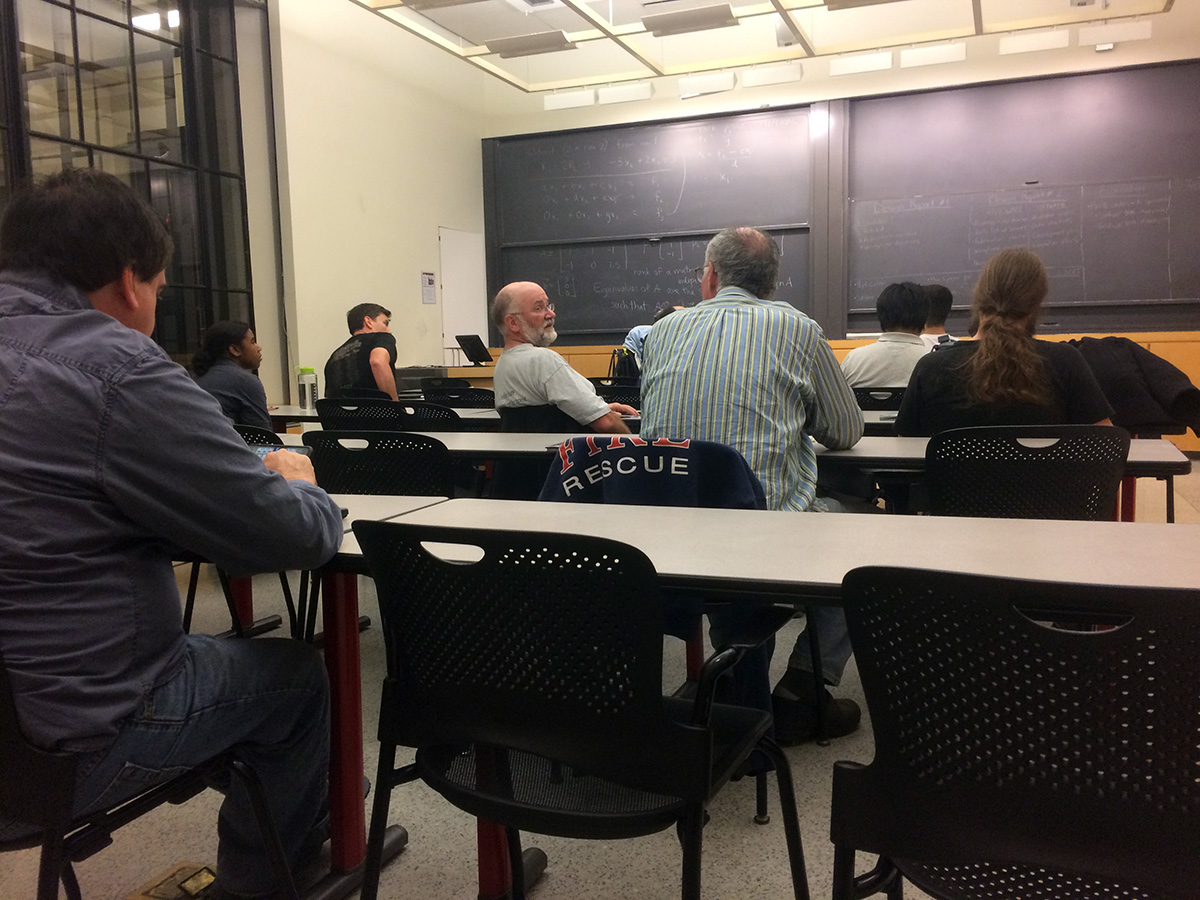 i left before 6:30pm, to MIT, where the exams were being held. there were helpful signs posted throughout the corridors pointing me to the direction of the exam room. inside were already half a dozen people, and the numbers would grow to a full dozen including myself. the demographic was mostly male, with there being a single young woman. the age was mostly older, but there were a few younger guys, college/grad school age. the lone black person was also the lone female.