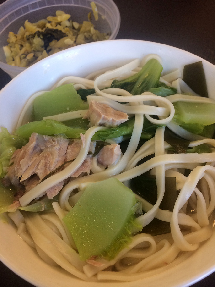 i returned to the cafe, where i painted over some scuffed up wall areas (elephant grey). since i didn't have lunch yet, my mother fixed me up a bowl of noodles. i returned home to fix the garden hose.
