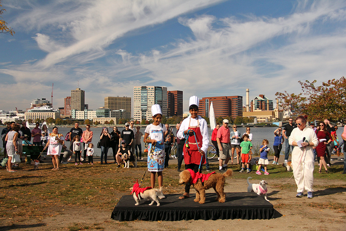 i was there for the very first halloween canine promenade on the esplanade back in 2011. i only remembered it because i was searching for old head of the charles photos and realized the promenade happens on the same weekend as the regatta. since then, halloween dog costume social events have become quite trendy, and there are in fact two more halloween pet parades happening next weekend. the dog promenade has changed since the inaugural parade 6 years ago. now you have to pay to participate, which seems kind of lame given the promenade would be nothing without the dogs (if anything, dog owners should be paid for bringing their pets, though they now give owners a complimentary gift basket of treats). it also used to start earlier, at 11am, but now the parade begins at 1pm (though it was advertised at 12pm, that's why i raced down from harvard square, afraid i'd already missed it).