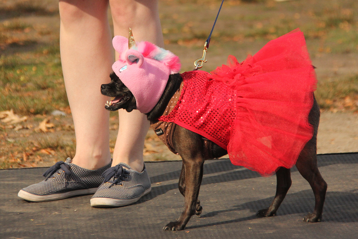 paula and i were joking that there wasn't a trump costume, until it was revealed that the stylish woman wearing the red dress and stiletto heels was in fact supposed to be melania and her little dog donald. the emcee was great - kennedy from mix 104.1 FM radio (dressed in a unicorn onesie) - really funny and witty when introducing each of the costumed dogs. thinking it'd take a while before the winners were announced, i opted to leave, but came back when i heard they were ready to present the winners. the best group costume went to a clue ensemble, while the best overall costume when to a shiba inu dressed as a starbucks barista. i didn't agree with either choices.