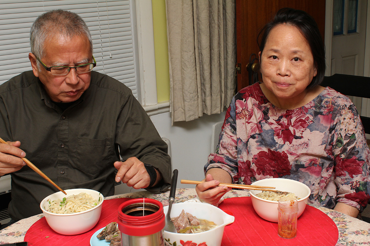 we had noodles for dinner, using the pressure-cooked lamb my sister cooked up yesterday (but that we didn't eat because she had also wanted to eat persian food instead).