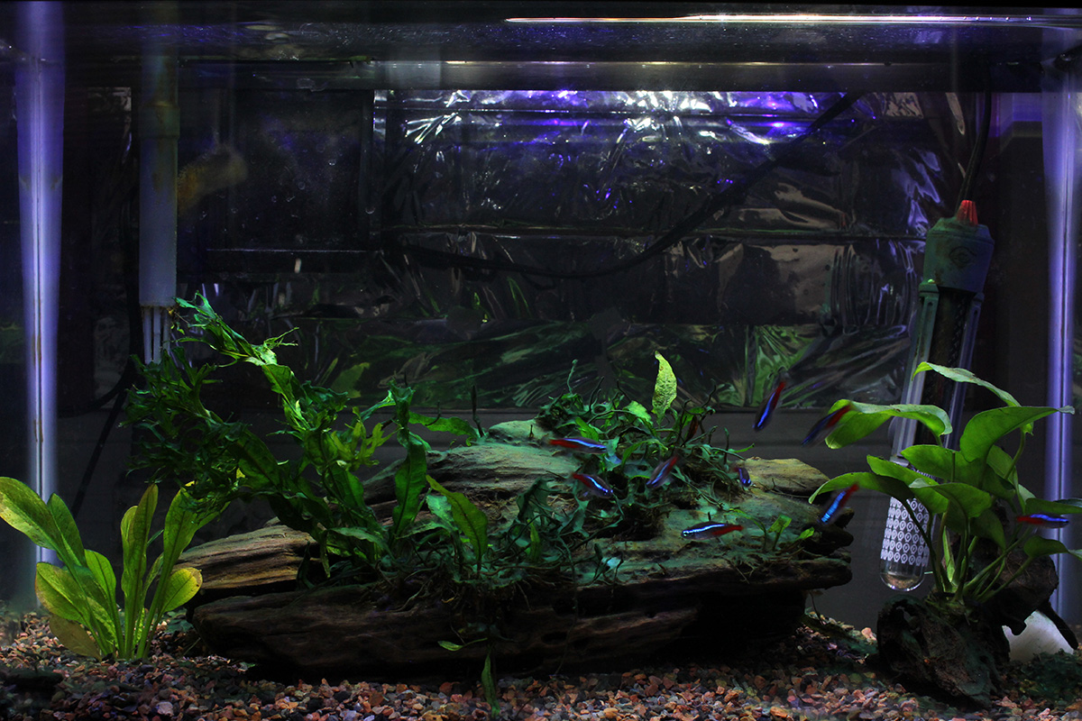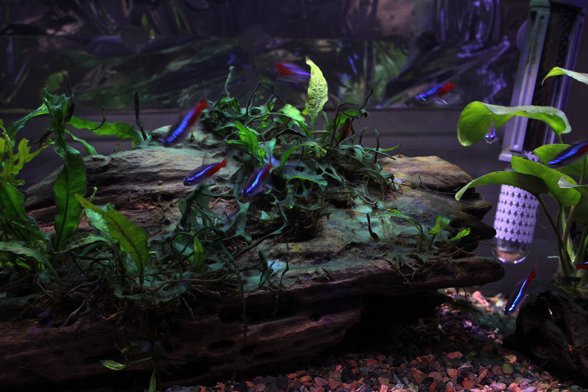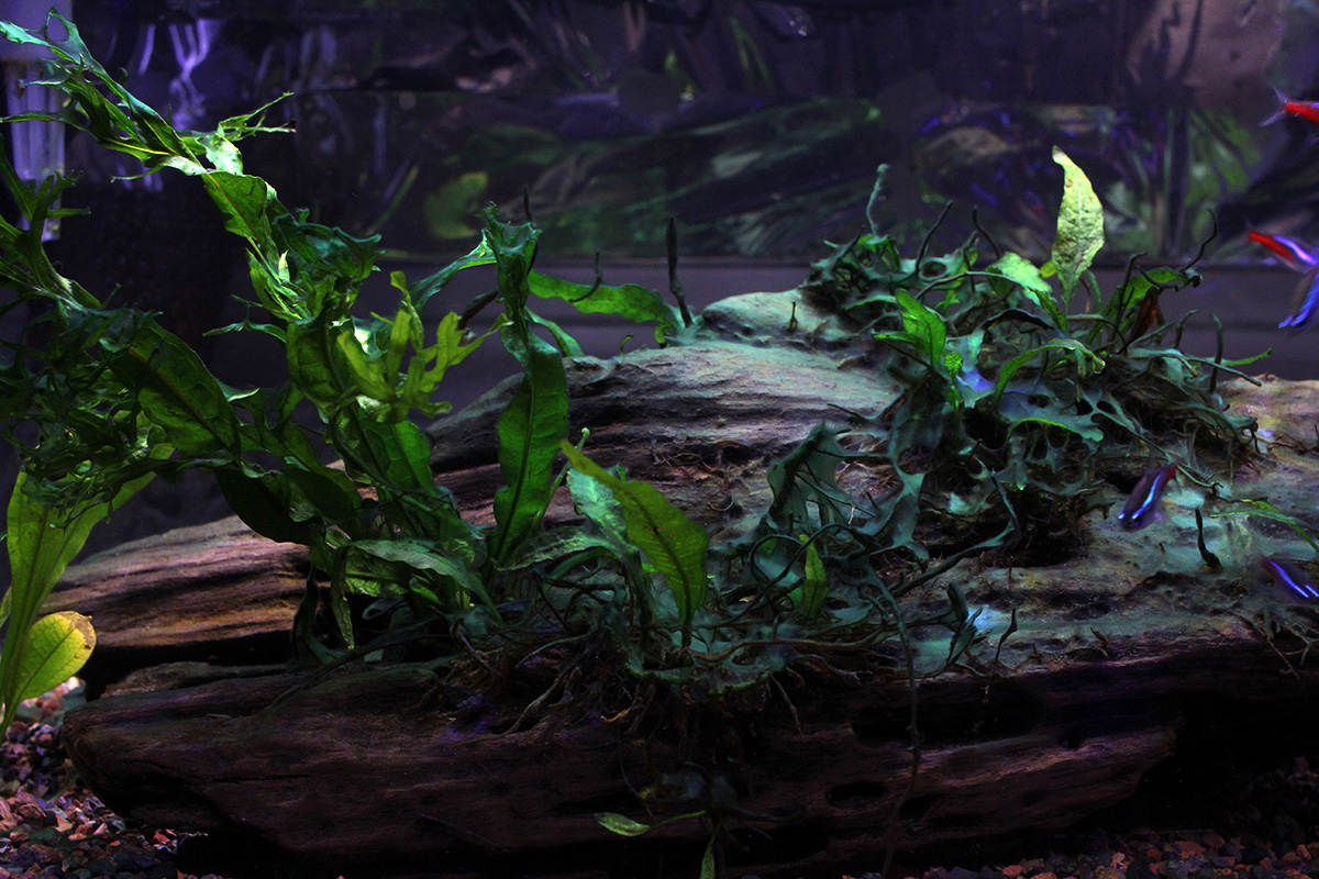 in the afternoon i cleaned the aquarium. it takes the cyanobacteria just a day to grow back and i haven't changed the water in 4 days. i've never been able to do it, but if i do a water change every single day for a week, i wonder if that would improve the conditions, or would it just delay the inevitable as the cyanobacteria quickly grow right back.