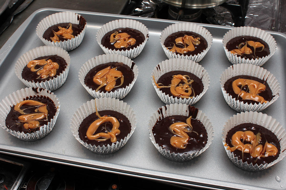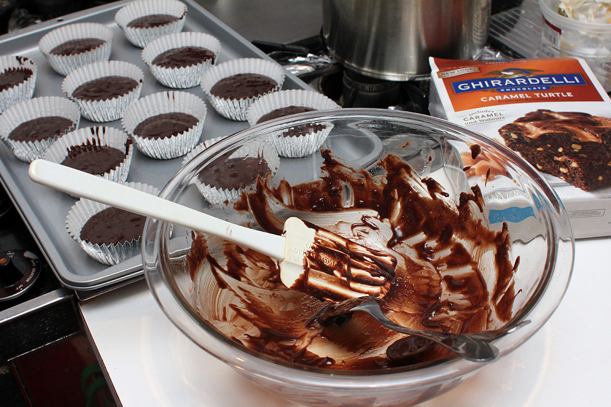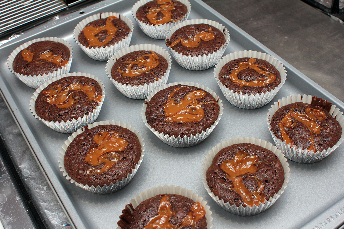 digging around the cupboard, i found a brownie mix i wanted to use before it became too expired. i ended up making a dozen brownie cupcakes (baked for 40 minutes), drizzled with caramel that came in a packet. that caramel was too thick and it was less drizzling and more just squeezing out in chunky lumps. i also used olive oil because i didn't have any vegetable oil. the final result was okay, a little dense, but that's the nature of brownies. next time, genuine cupcakes! with maybe frosting on top!