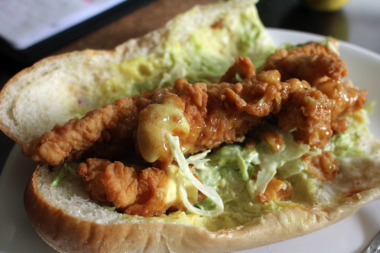 li came home around 1pm. first thing he did was make lunch, then do a load of laundry (he always seems to be doing laundry when he comes back from the gym), and finally a shower. i noticed he was being very meticulous about his cleaning, even blow drying his hair. i had a suspicion he was going out again, and sure enough, around 2pm he left, with the washer still running. just so happens my father called me around that time, asking to come over with a chicken fingers sub from ma magoo's. with li not around, i said it was okay. a full chicken fingers sub is so massive, it's really 2 meals in one. my father also brought some apples he collected when walking hailey. when the washer stopped, i put li's clothes in the dryer. he didn't ask me to, but who knows when he'll be back, and i didn't want wet clothes to just be sitting there.