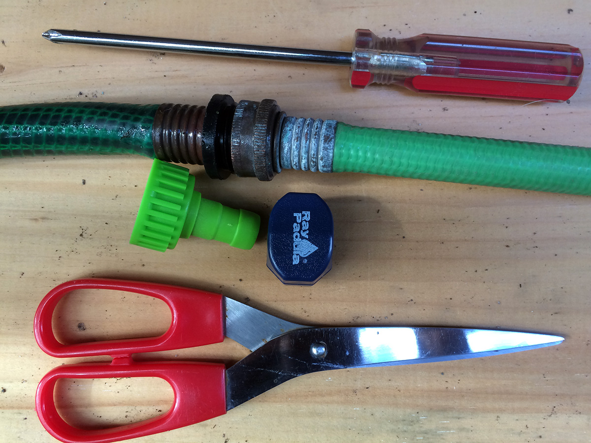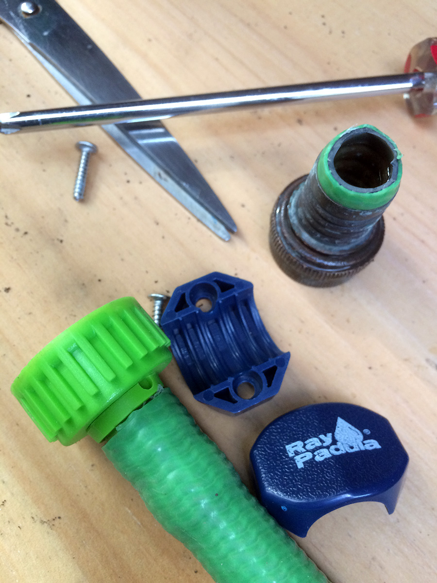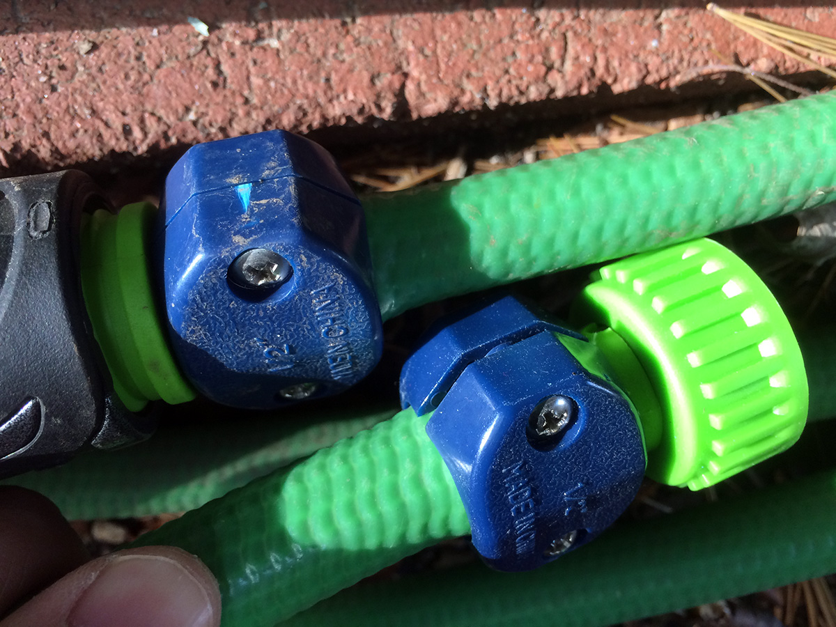 i fixed the other end of the leaking garden hose, adding a female mender. having done it once, it was easier the second time around. for some reason i couldn't close the clamp all the way shut, but it was already pretty tight, and when i opened the faucet, the hose no longer leaked.