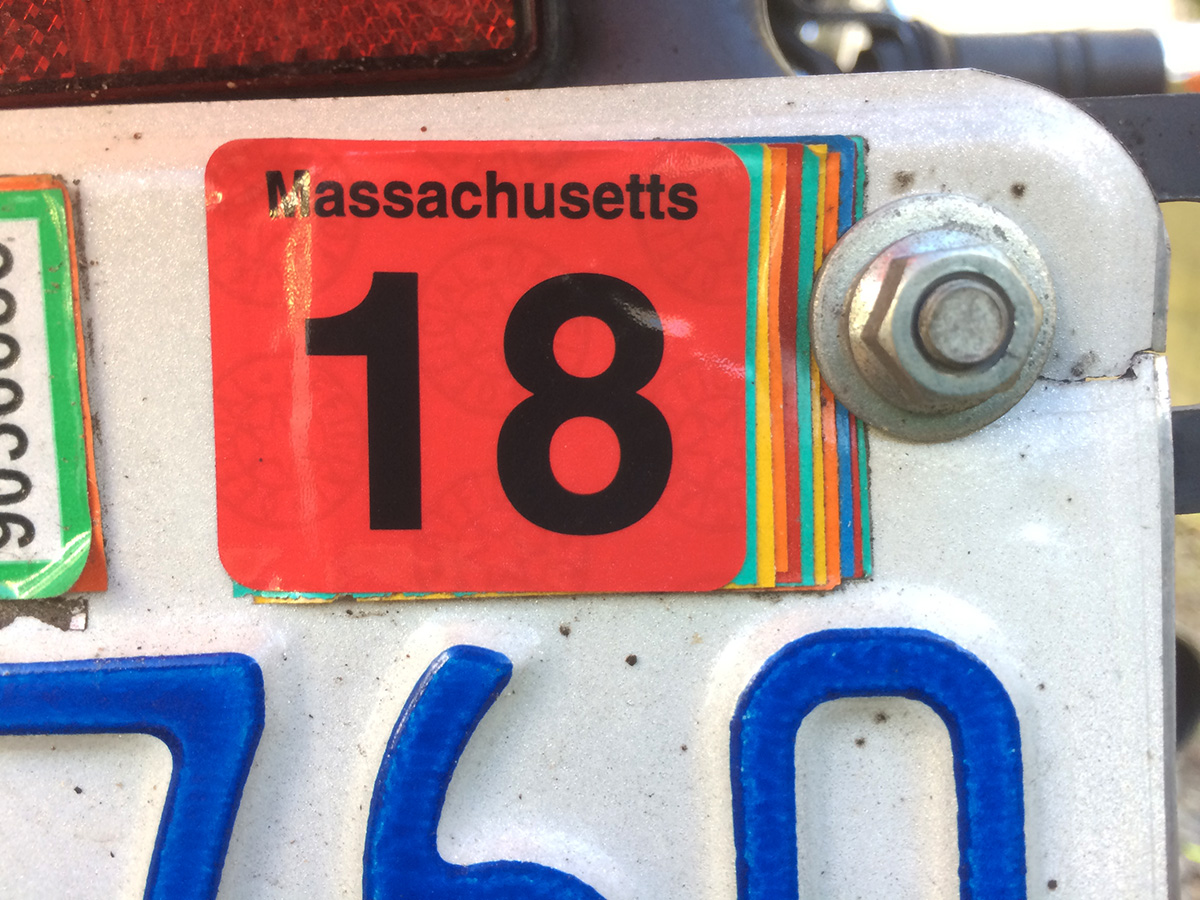 i put the new registration sticker on my motorcycle license plate before riding off to belmont. i purposely stick it on with a slight offset so i can see the sticker beneath, creating a nice rainbow effect and something like the rings of a tree to tell the age of my motorcycle. according to the stickers, 2018 will be my 11th year with the honda shadow spirit. has it really been that long? but that's not really true, because i've only had the shadow since 2009 (8 years ago). the reason why there's more stickers than the number of years i've owned my current bike is because i kept the license plate when i upgraded my motorcycle, so a few of those stickers are from my honda rebel days.