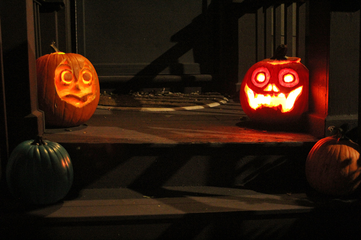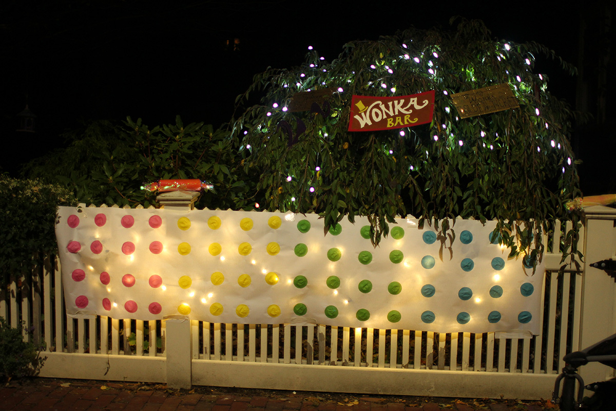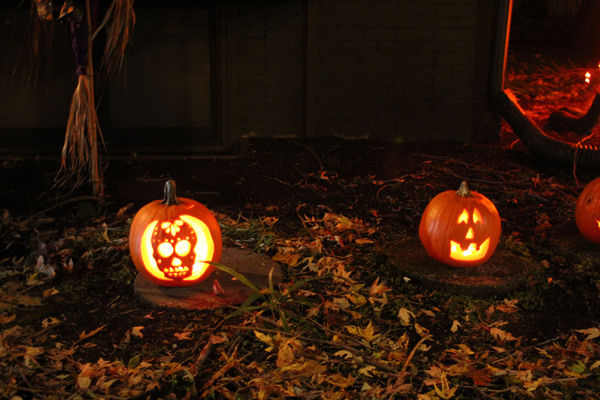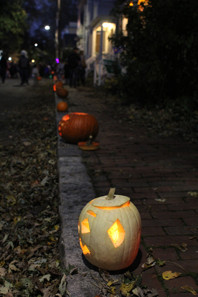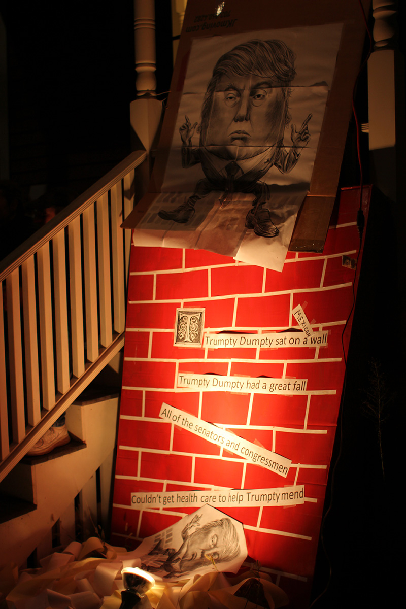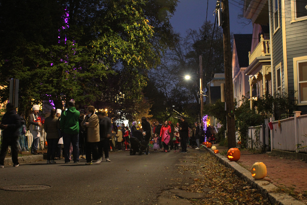 elsewhere on traymore it felt more like wake, with barely any children, and just a few houses putting on halloween displays. i fear eventually traymore will stop having elaborate halloween haunted houses altogether. around the corner though on harris was an edgar allan poe display, with spooky human-sized raven, poe lookalike, and dead woman sleeping in a coffin.