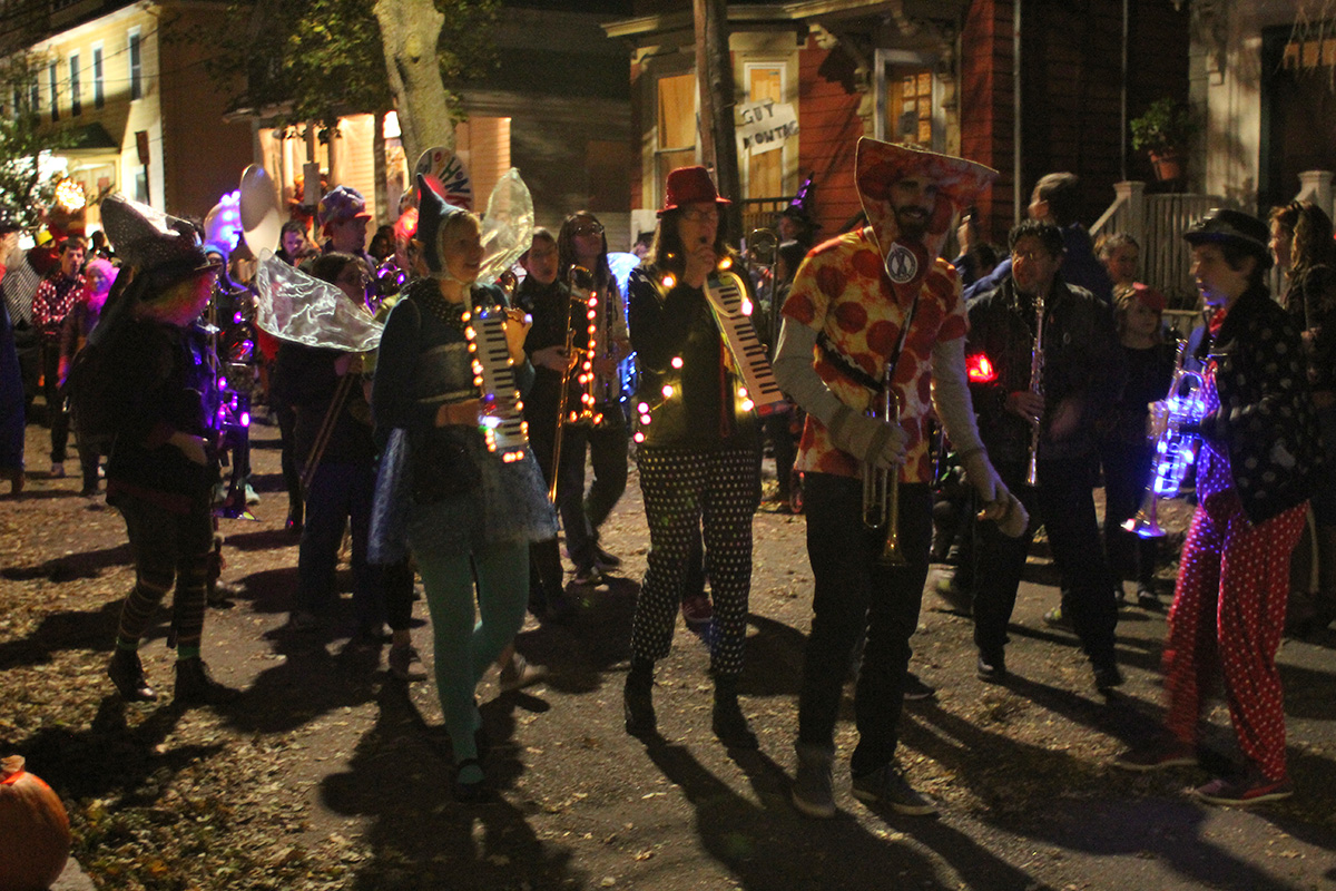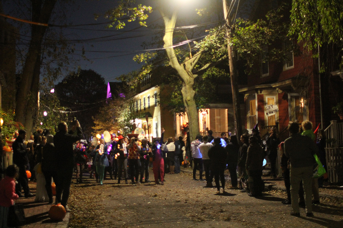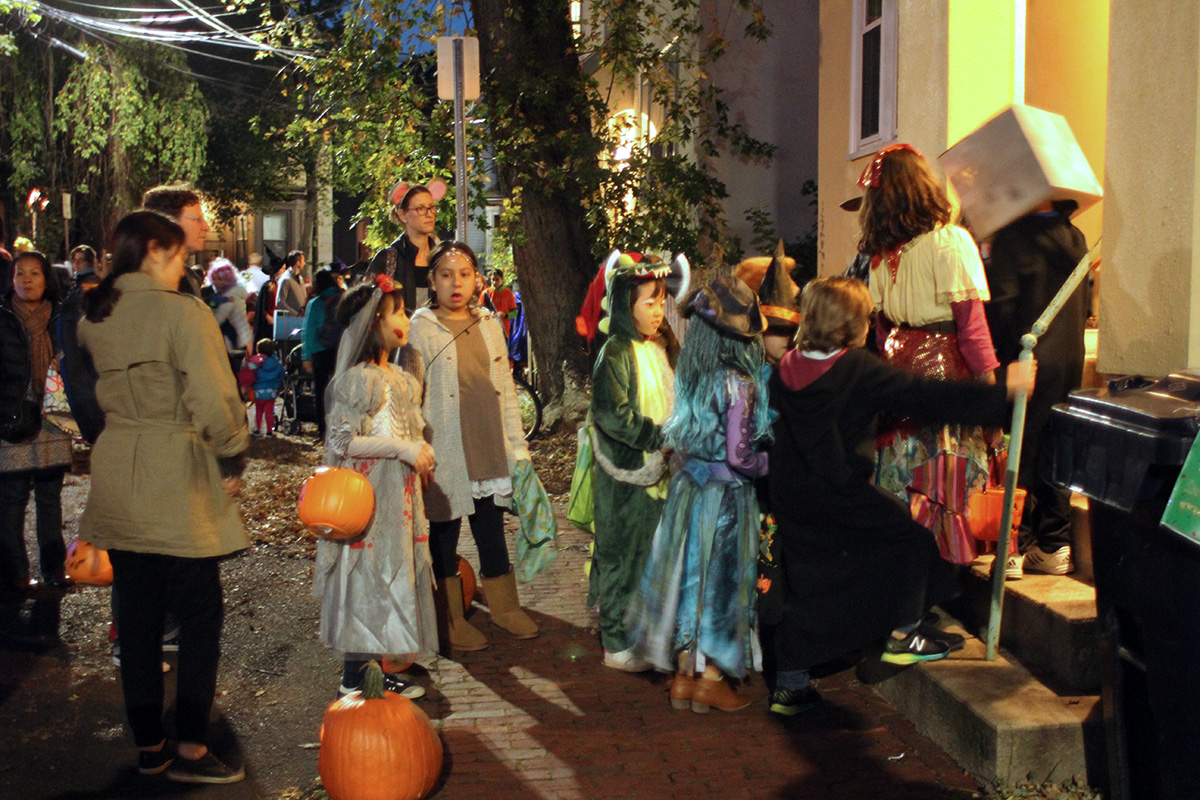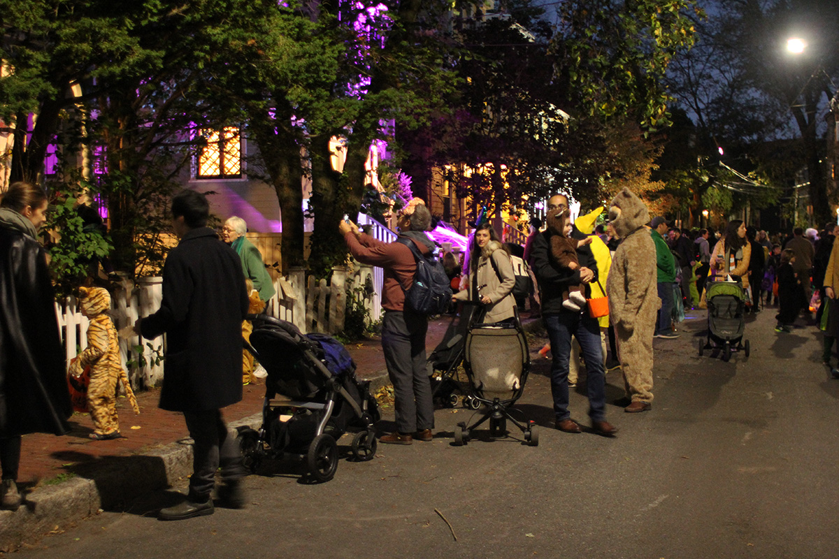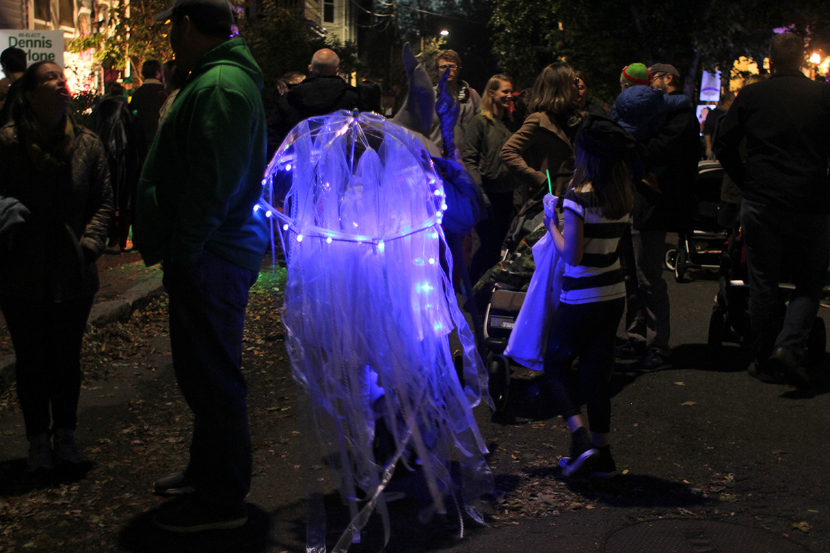 i met bruce around 6pm to go see the halloween festivities happening on sacramento and traymore street. we met jack outside the now defunct oxford spa. maybe it's because we came so early, but there seemed to be even more people than in years past, to the point where sacramento street was just a sea of people.