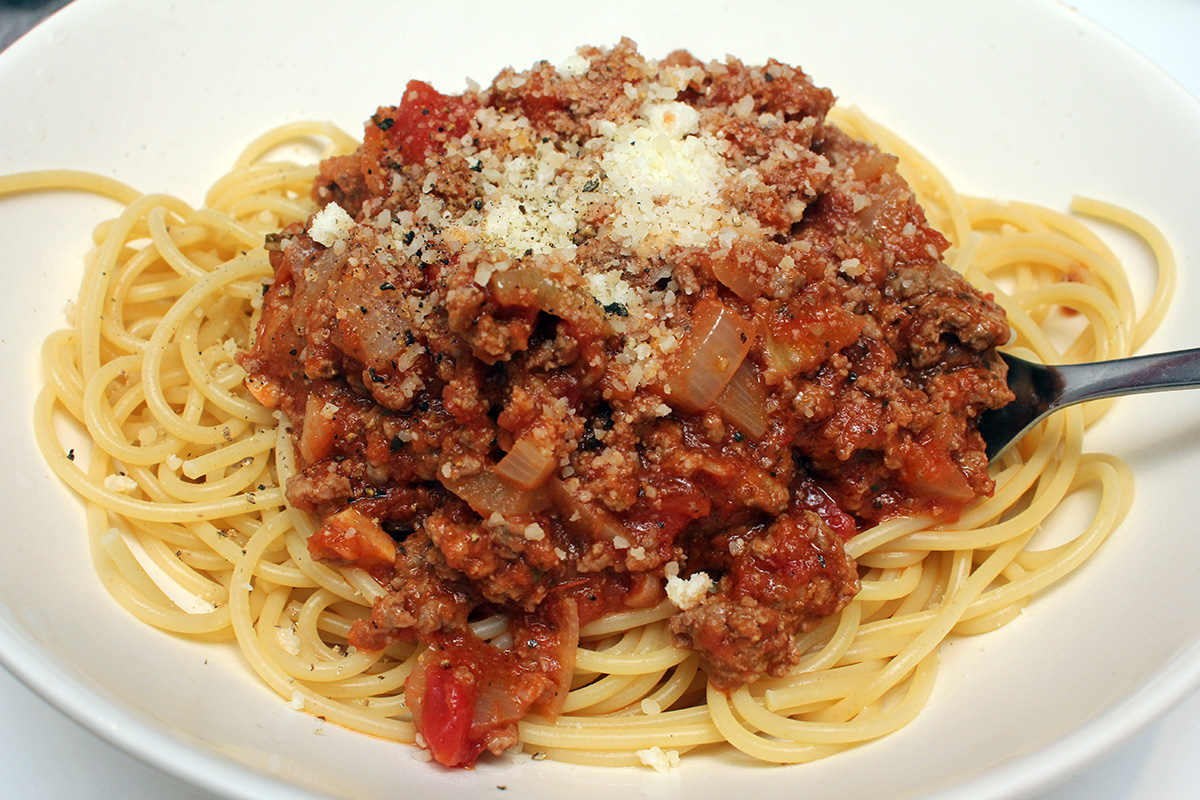 i whipped up a quick batch of meat sauce for spaghetti, sauteed chopped onion and garlic, a pound of ground beef (80% lean), followed by a whole jar of classico tomato sauce. meat sauce spaghetti is so easy to make, i'm surprised i don't eat it more often. afterwards i felt very filled. li came home around 8:30pm. i let him try some of my spaghetti, i believe he's never had italian noodles before, and seemed to like it.
