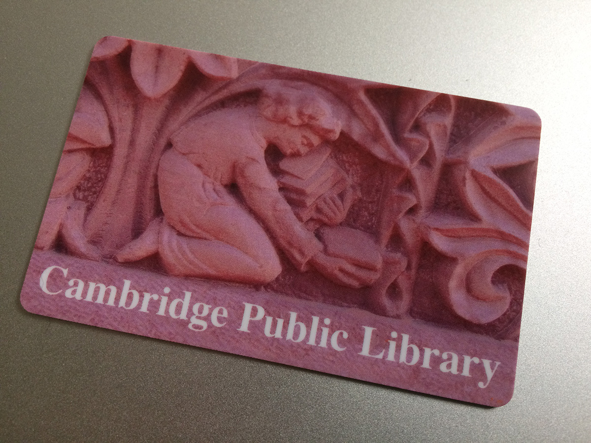 i left home around 10:30am via motorcycle, to visit libraries. first stop was the cambridge public library to get a new library card. i'm not sure where my old card went, the last time i used it was back in december, when i picked up a museum pass. it's probably in one of my winter jackets and i just forgot about it. i did have an old belmont public library card, but when they scanned it, it came up empty. anyway, getting a new card is a quick and painless process, and completely free. the librarian gave me the option of either the standard card or a keychain card; i chose the standard. i got a new card number but it's still linked to my old account.