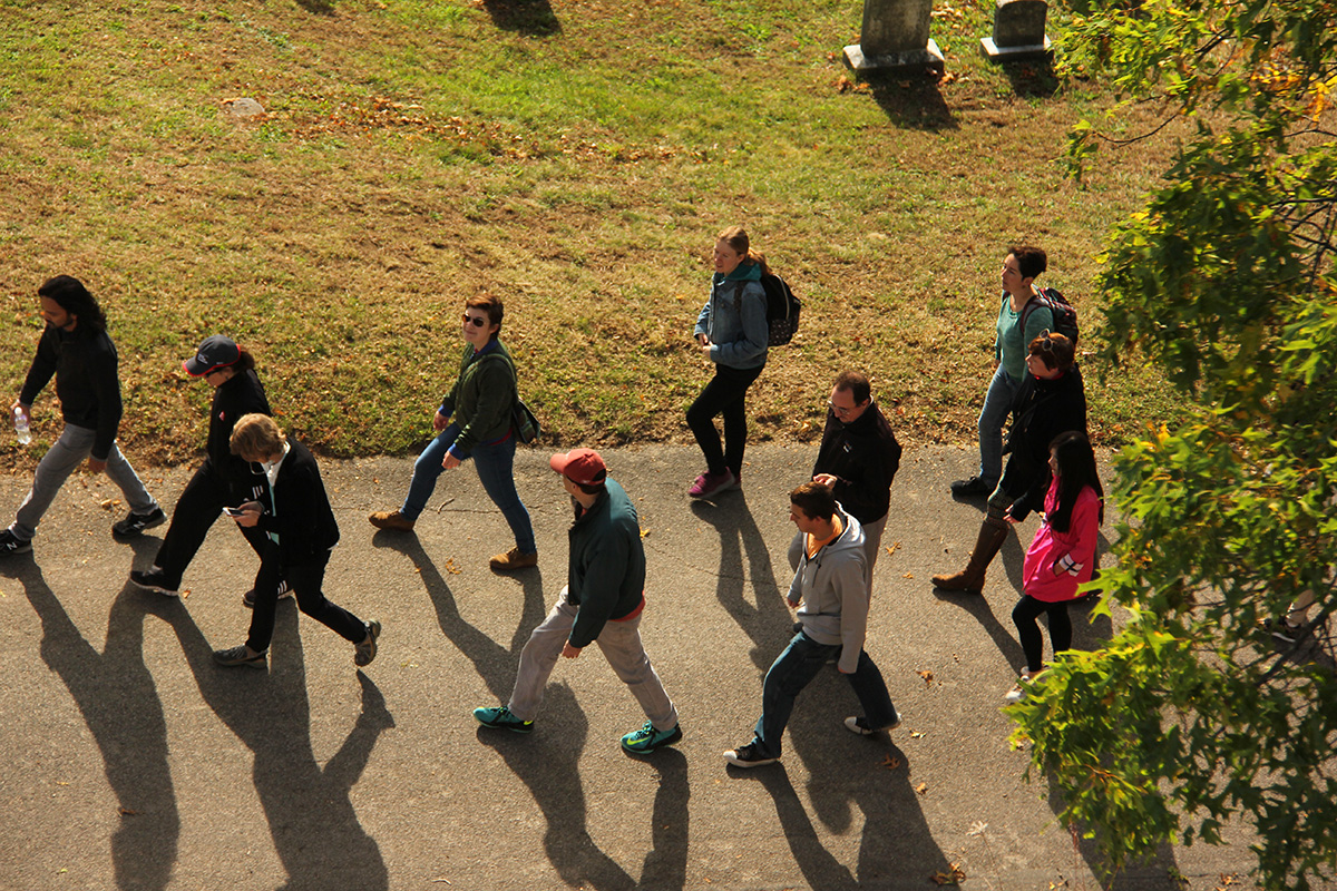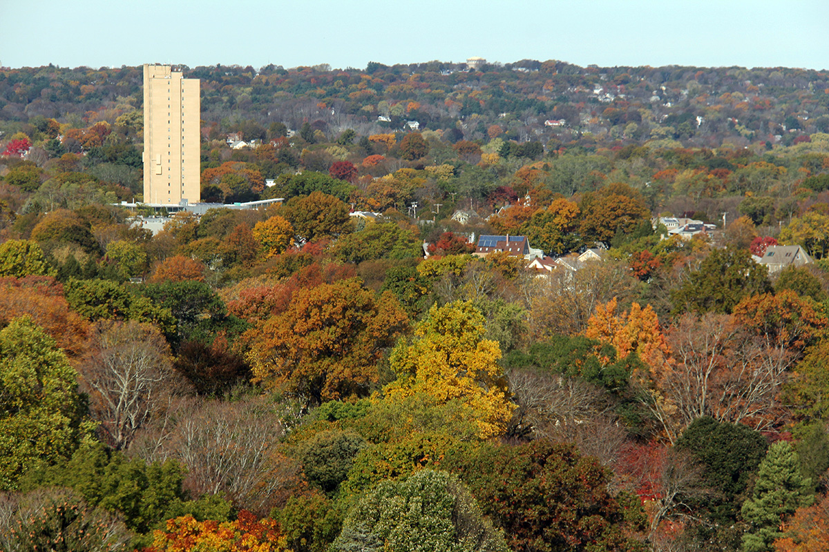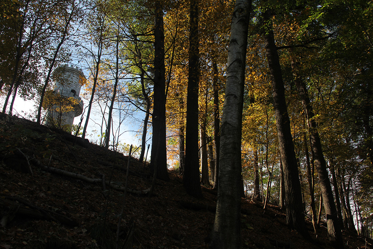 we made our way to washington tower and climbed to the top. it was crowded, but about to get even more so as we saw a tour group close to 2 dozen walking up the hill. though it was a clear day, the colors were sort of muted, not at all spectacular. some trees were already bare, with others were still green. after taking in the view we climbed down as soon as the tour group was about to enter the tower.