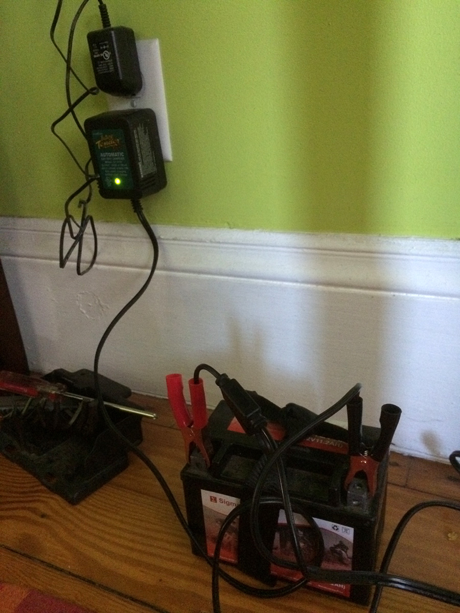 the battery was charged and i installed it back into the motorcycle this morning. li went out to play badminton while i left for belmont. i was relieved that the bike started on the first try, without any drama. i bumped into my neighbor carrie who was raking up the leaves on the sidewalk. she said she never knew i had a motorcycle.