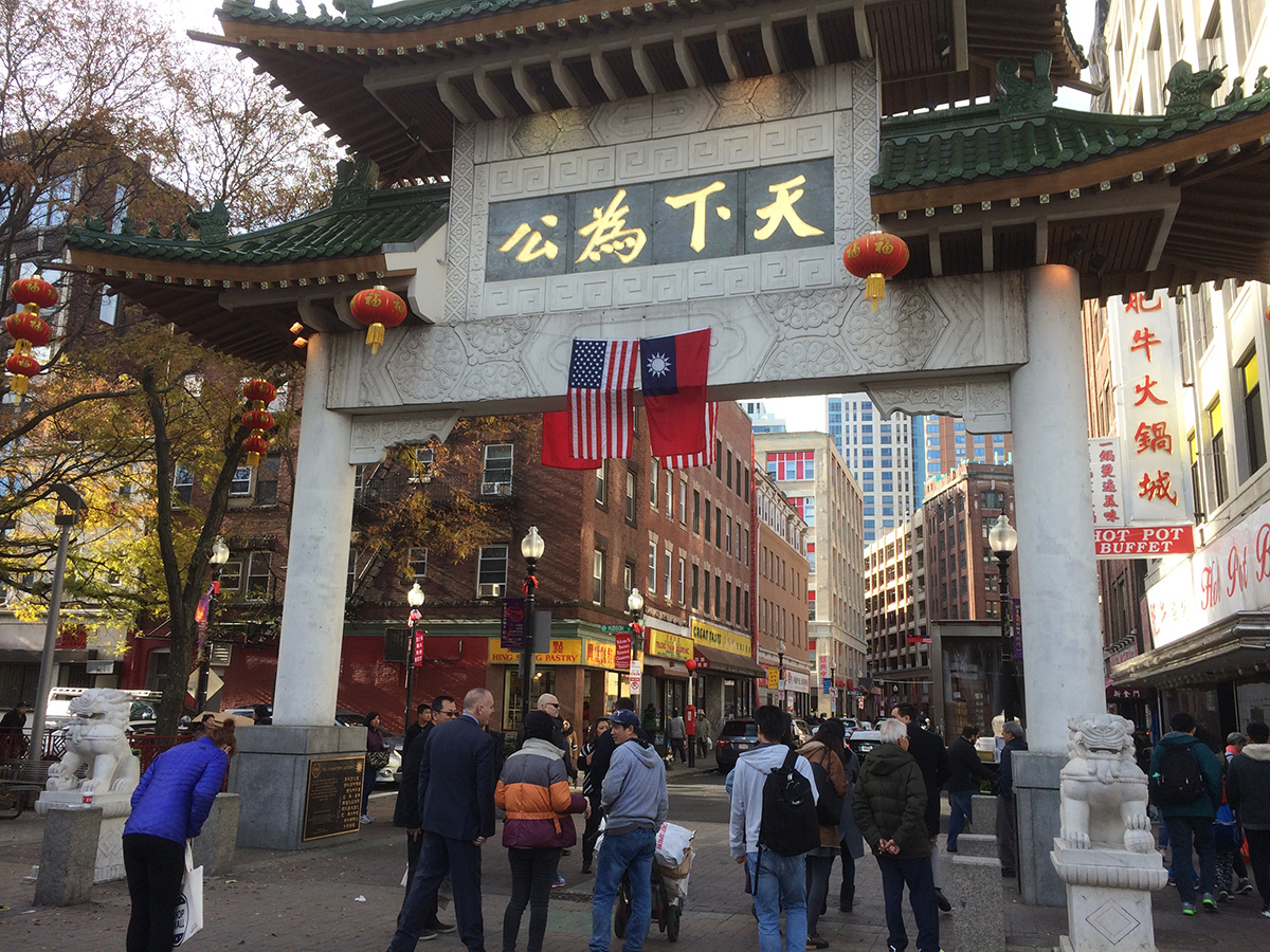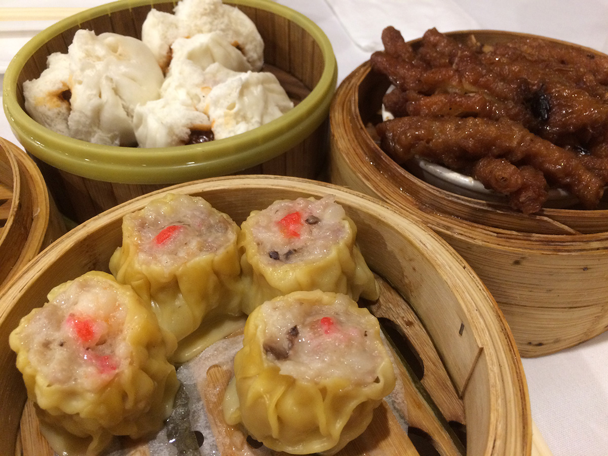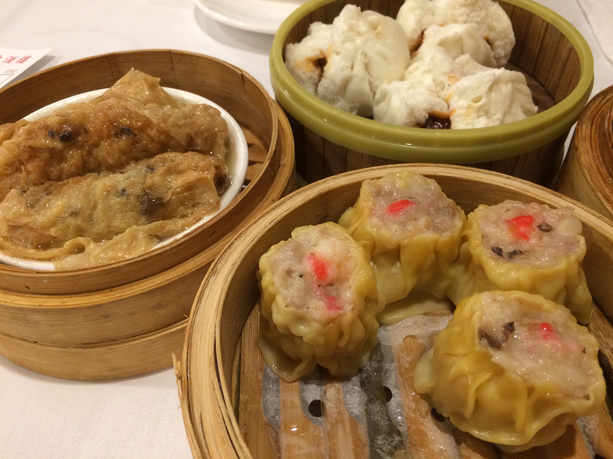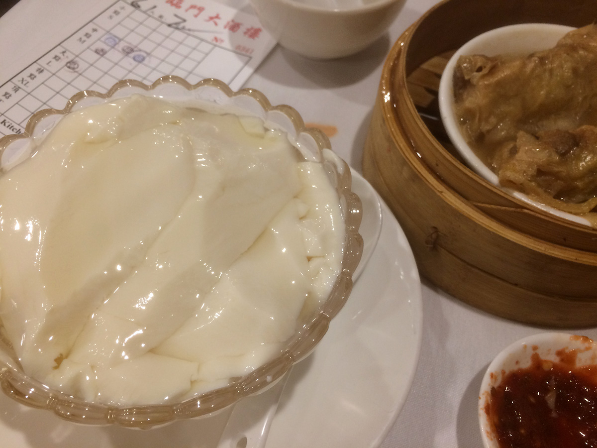 it took us just a bit over 20 minutes to arrive in chinatown, park our bikes, then go to hei la moon. it was crowded, we went downstairs to get a table, and even then there was a few minute of waiting. the table we got was up against the wall and surrounded by other tables, so the carts never came to us, we had to go to the carts. the one good thing was it was quiet where we were.