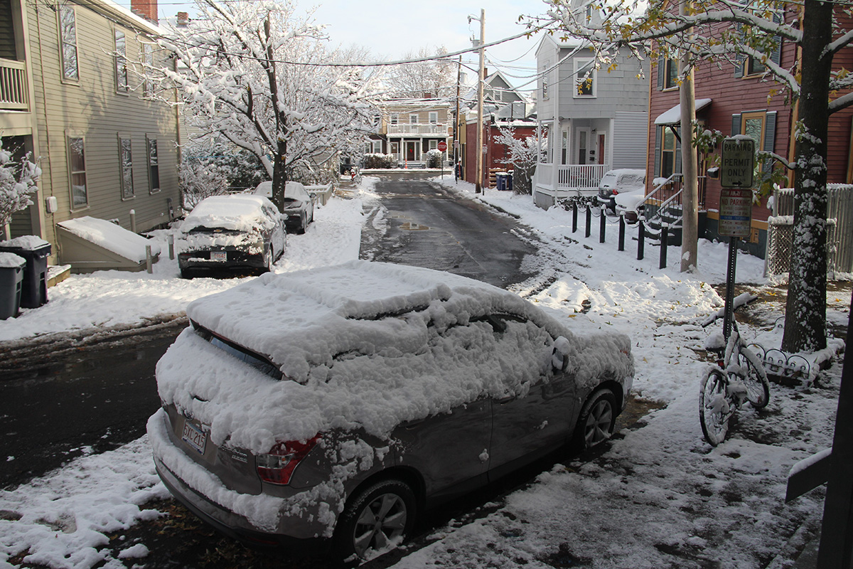 i woke up before 9am thinking my father would need my help to shovel the sidewalk around the cafe and my grand uncle's place. however when i checked the webcams, i couldn't see him, so he must already be outside cleaning the snow. i got dressed and went outside to shovel my own sidewalk. there was about 1/2 inch of slushy snow that i quickly removed. later in the morning i saw paul going outside. perhaps feeling guilty that he'd neither raked the leaves nor done any snow shoveling, he shoveled a path into the backyard instead.