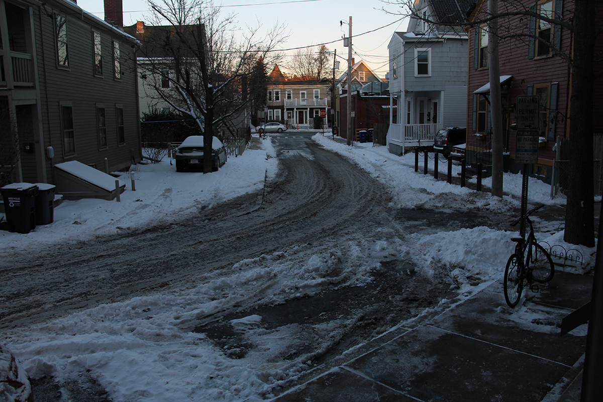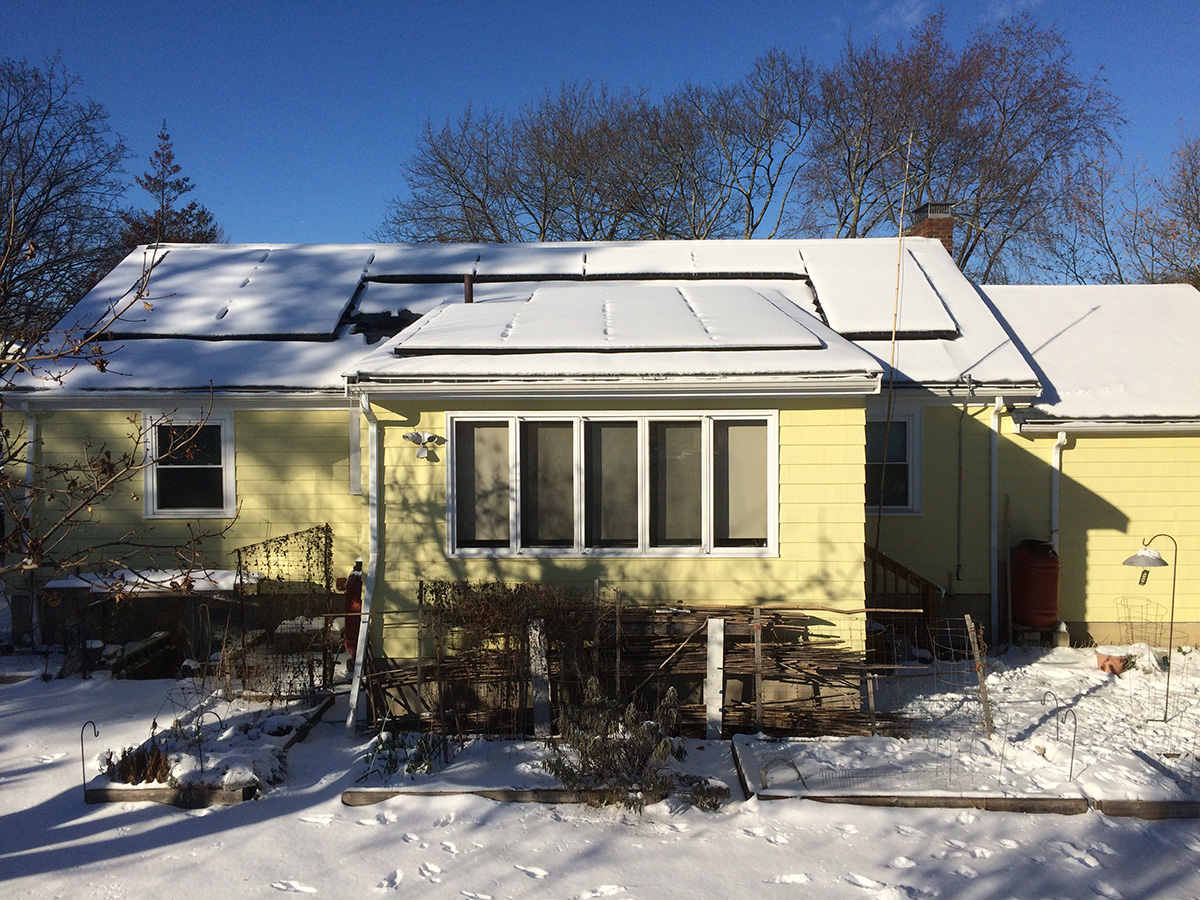 i got back home at 1:10pm. i was finally ready to have some lunch when i called my father to confirm he got my message and he asked me if i wanted to be in belmont for the inspection as well, so he came to pick me up. when we arrived at the house, there was already a car outside, blocking our driveway for some reason. joe's familiar face greeted us. he let him in the basement to turn on the inverter, and then he went back outside to wait in the car for the inspector. the inverter saw 23 panels but could only ping 5 of them at most. those happened to correspond to the few panels up on the roof that had some visible surfaces along the lower edges; the rest were covered in ice and snow. in fact, on our ride back to belmont, we kept checking out other solar installs along the way. some houses had panels free of snow (those were the ones with steeper roofs), while others were still covered up (like ours). our neighbor at the beginning of the street still had their panels covered, so we didn't feel too bad about ours.