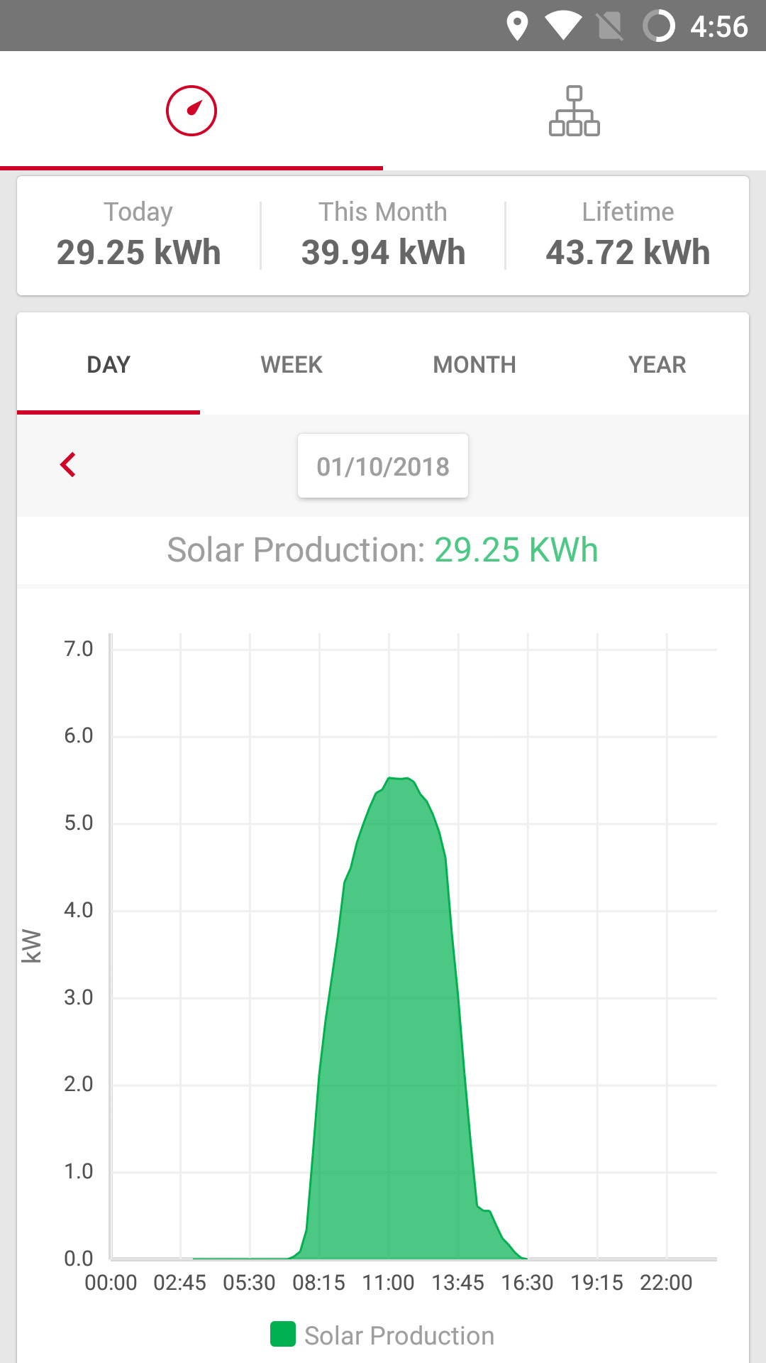when the sun finally set, the total solar production for today was a whopping 29.25 kWh. yesterday i projected we'd reach 20 kWh, but i didn't think we would not only break it but missed 30 kWh by just 750 Wh.