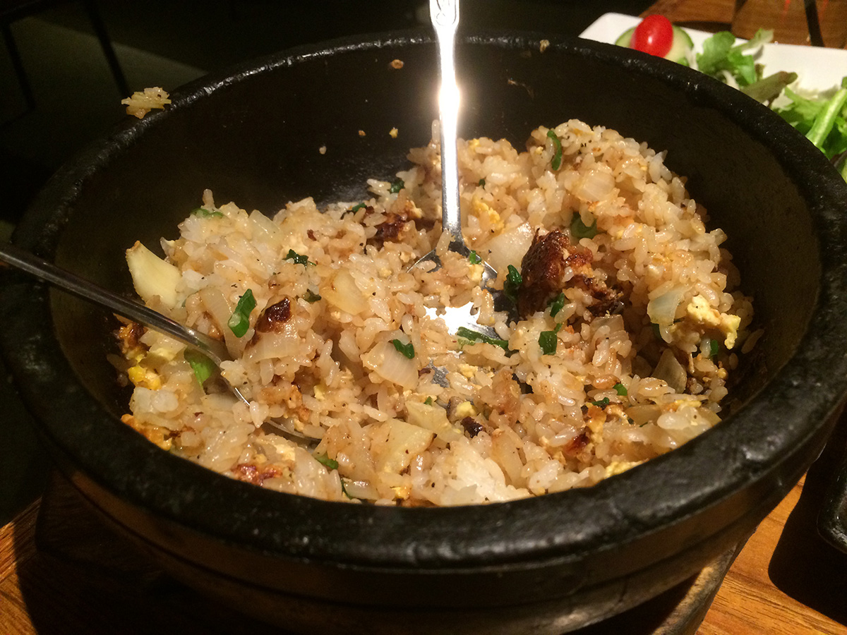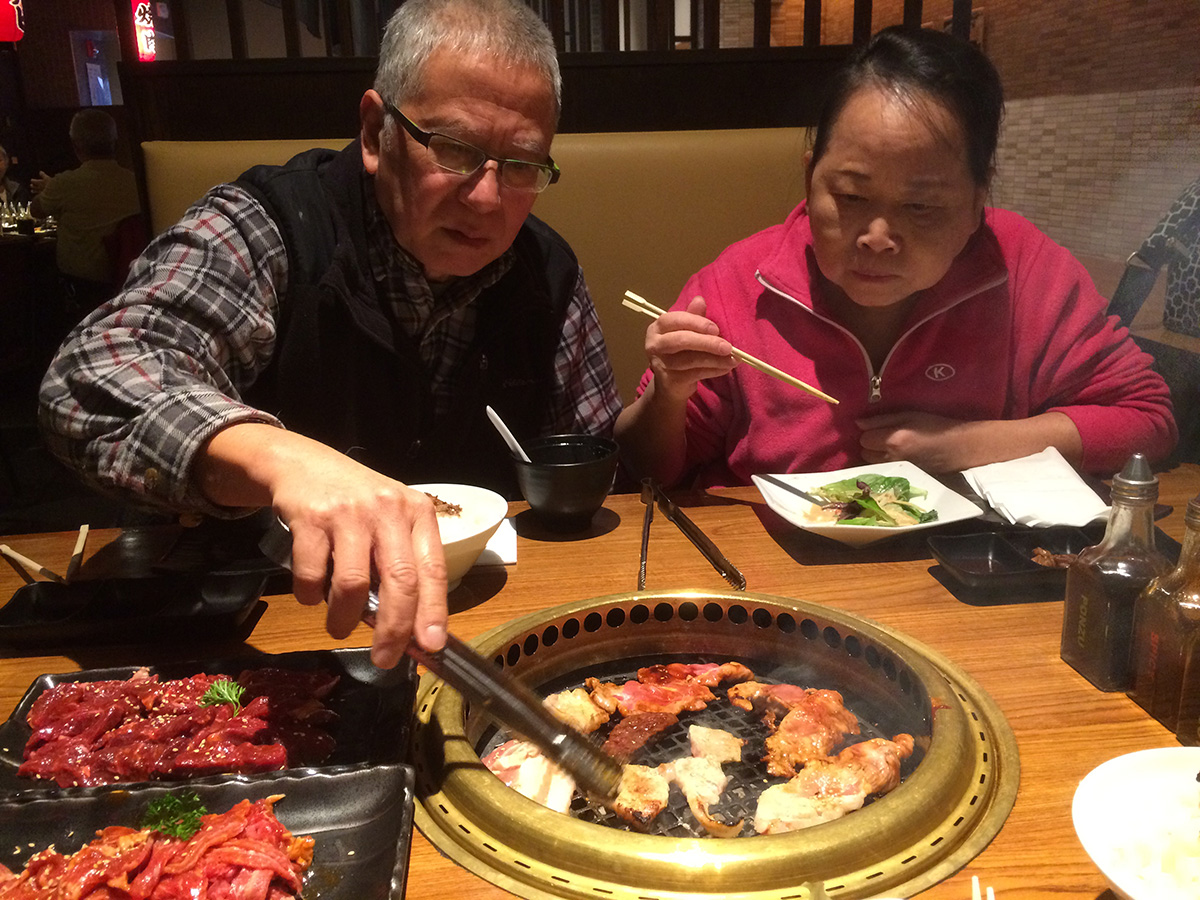 my parents had never been to gyu-kaku before even though they've heard me raving about it (i've been here thrice: with: eliza, GC, julie). we each got a variation of the lunch special ($10.95 each), with my mother upgrading her order ($2) so she could try the garlic rice. for meats, we picked yaki shabu beef miso, pork belly white soy, spicy pork, and beef hanger steak miso. my parents liked the yaki shabu beef miso and spicy pork te best as they were thinner sliced and had more flavors. they didn't care much of the different sauces, even though i was hitting the spicy sauce so much i must've used half the bottle. my mother also liked the garlic rice (served in a stone bowl) but i tried it and couldn't really taste any garlic even though i could see the garlic slices. overall my parents though it was pretty delicious and worthwhile, and felt stuffed afterwards.