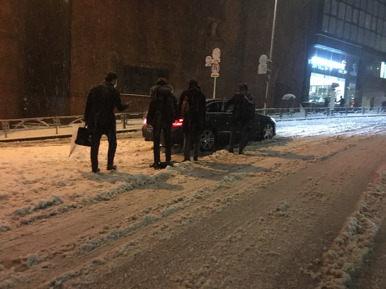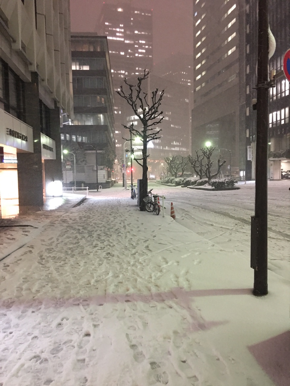 after dinner my father gave me a ride home. i could've waited for my sister to come and pick up her dog, but there wasn't any knowing when she'd get here. later in the evening alex sent me some photos of tokyo, where it'd snowed 8". they don't typically get this much snow so of course it snarled the city to a crawl, and they didn't have the infrastructure to clean it all up.