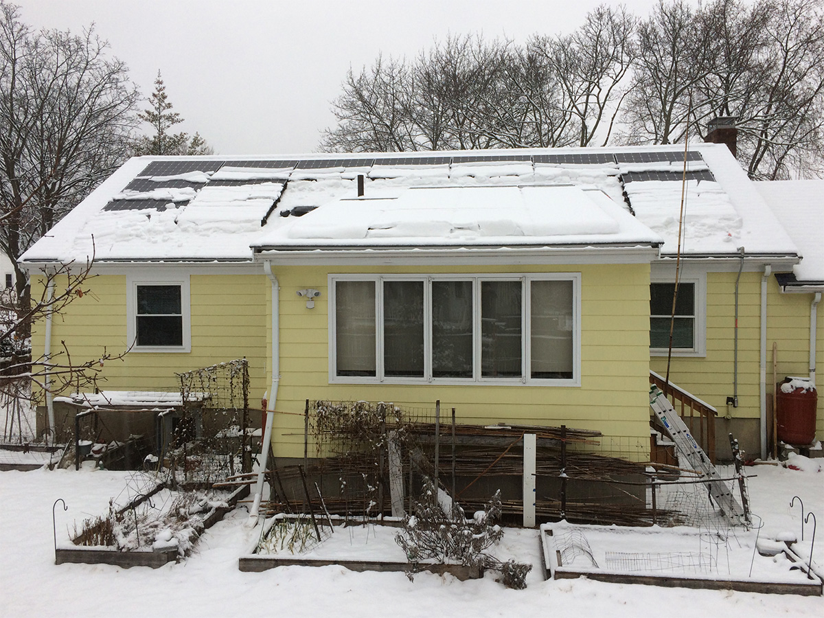 on the ride from my house to belmont we pass by nearly a dozen solar installs. 3 houses just around where i live, and 2 others on the same street as my parents' place. from the snow condition on those panels, we had an idea of what was in store back at the house.