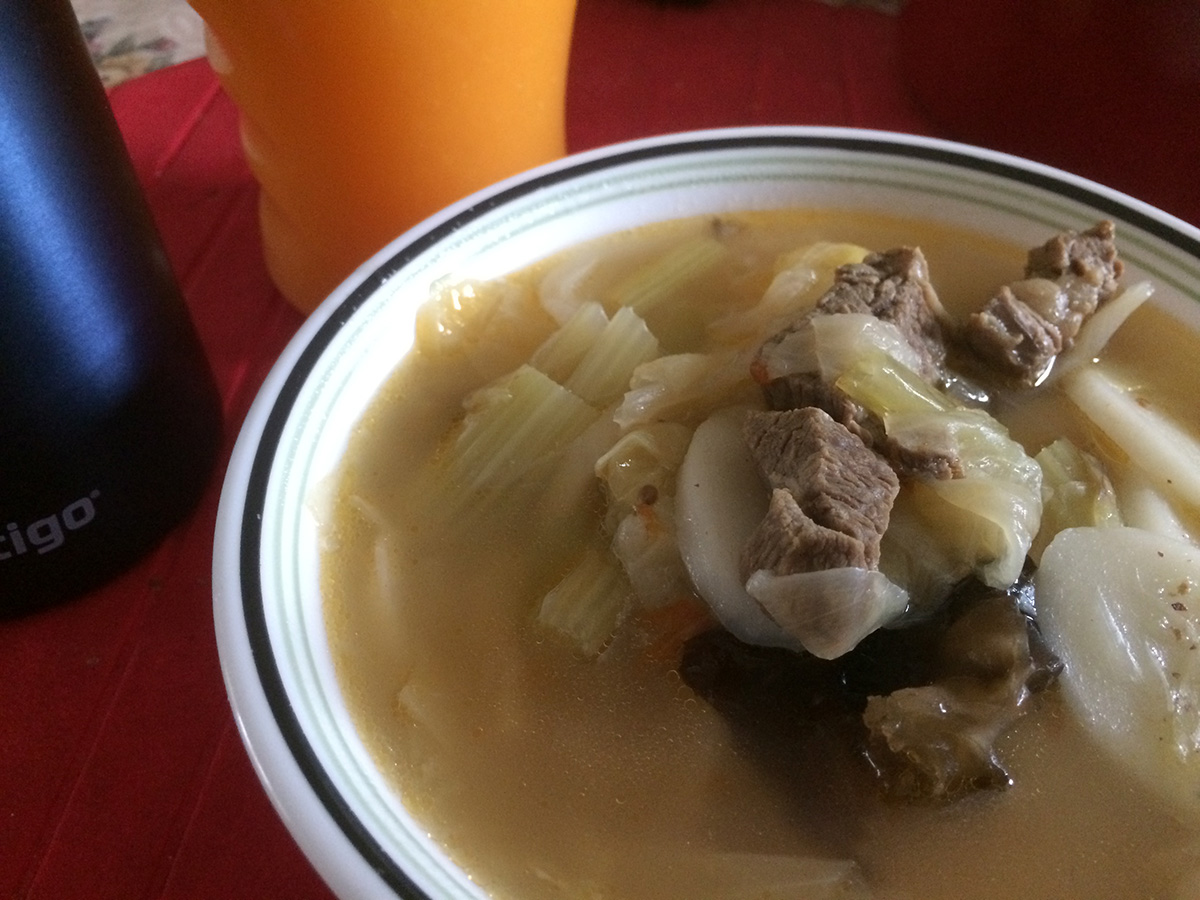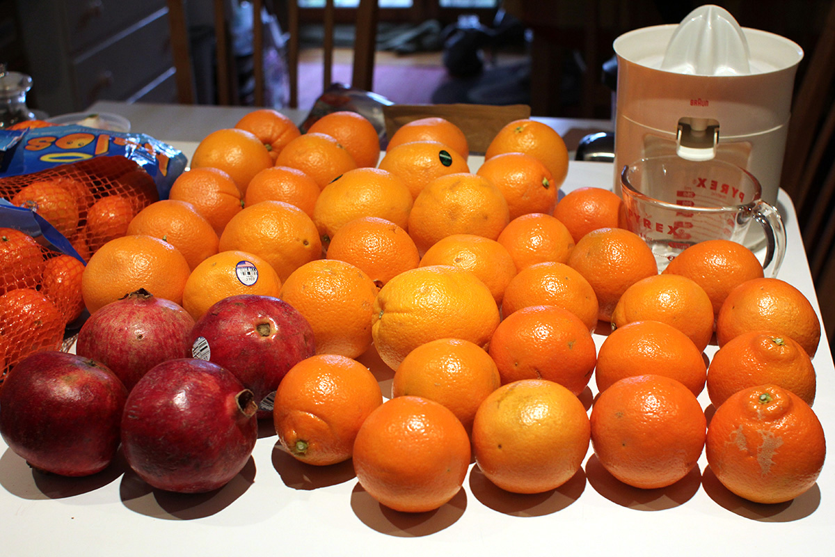 i had a bowl of beef stew for lunch along with some rice cake noodles. my mother tried this latest batch of orange juice. while she agreed it was more tart than the last batch, it was still sweet enough and had a robust orange flavor.