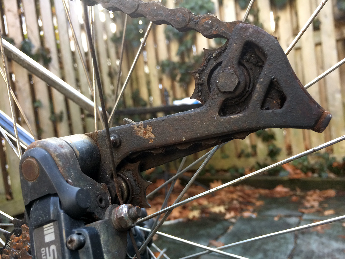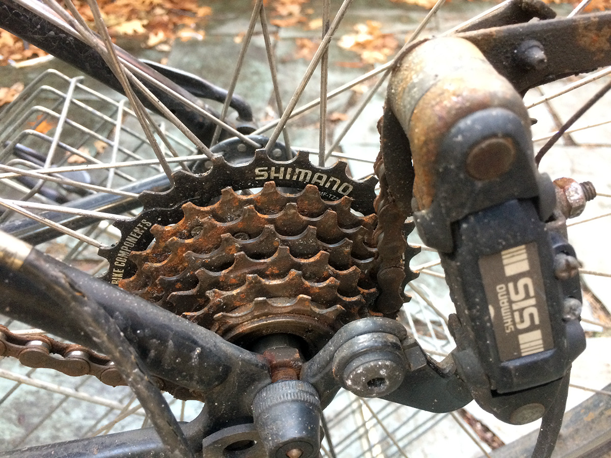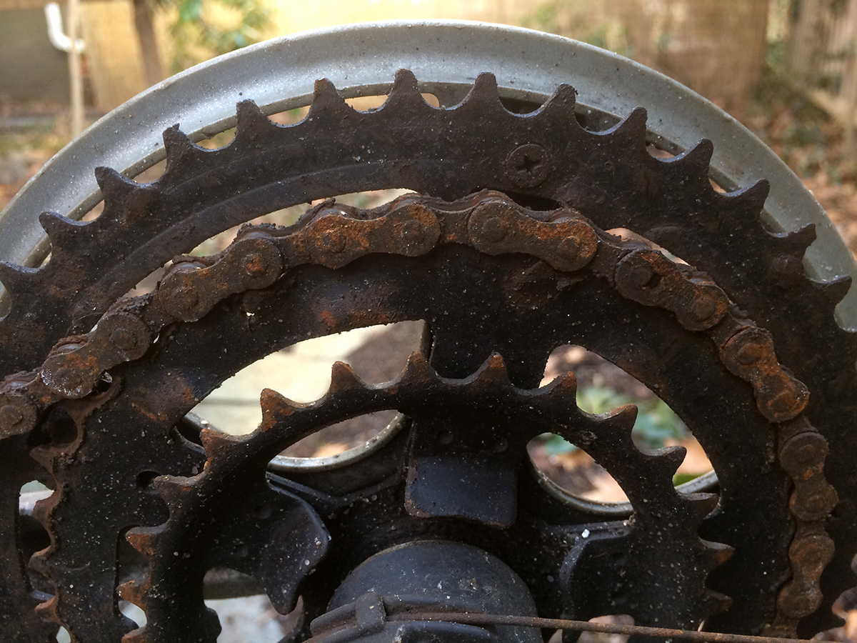 i left the cafe before my mother came back. once i got home, spent a some time cleaning the grime and rust from my bike gears and chain. i sprayed some foaming cleanser and washed it up with a bucket of water i filled from the kitchen sink. bike parts really take a beating from all the winter road salt. my cassette/freewheel is relatively new, just replaced back in july 2016, and already they're pretty rusty (prior to that they were replaced in november 2011). the chain is also relatively new, replaced on july 2016 as well.