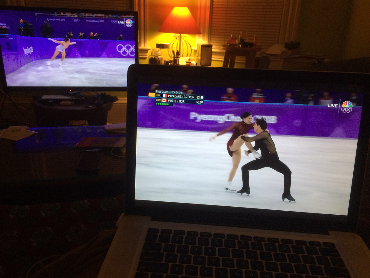 by then it was 8pm. i was too tired to do any cooking, so i just heated up a pair of french bread pizza in the oven. i ate dinner while watching the olympics coverage, including the women's figure skating and the amazing battle between russians medvedeva (18) and zagitova (15).