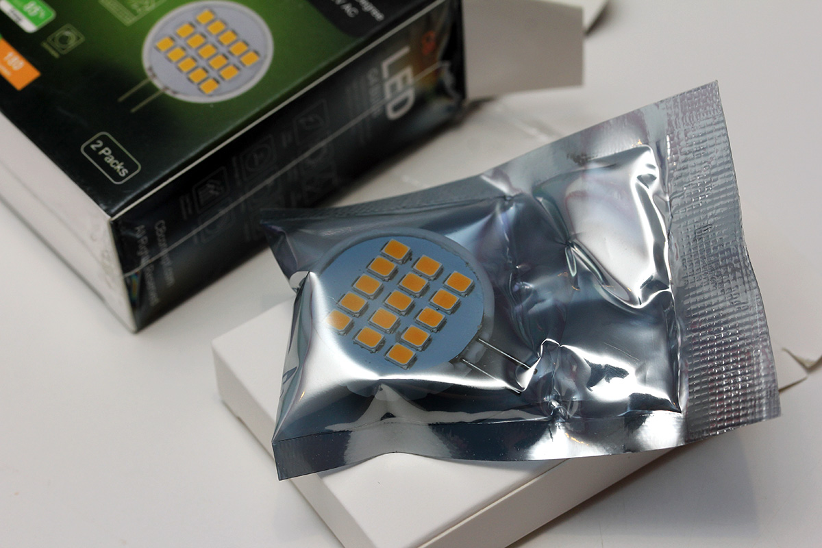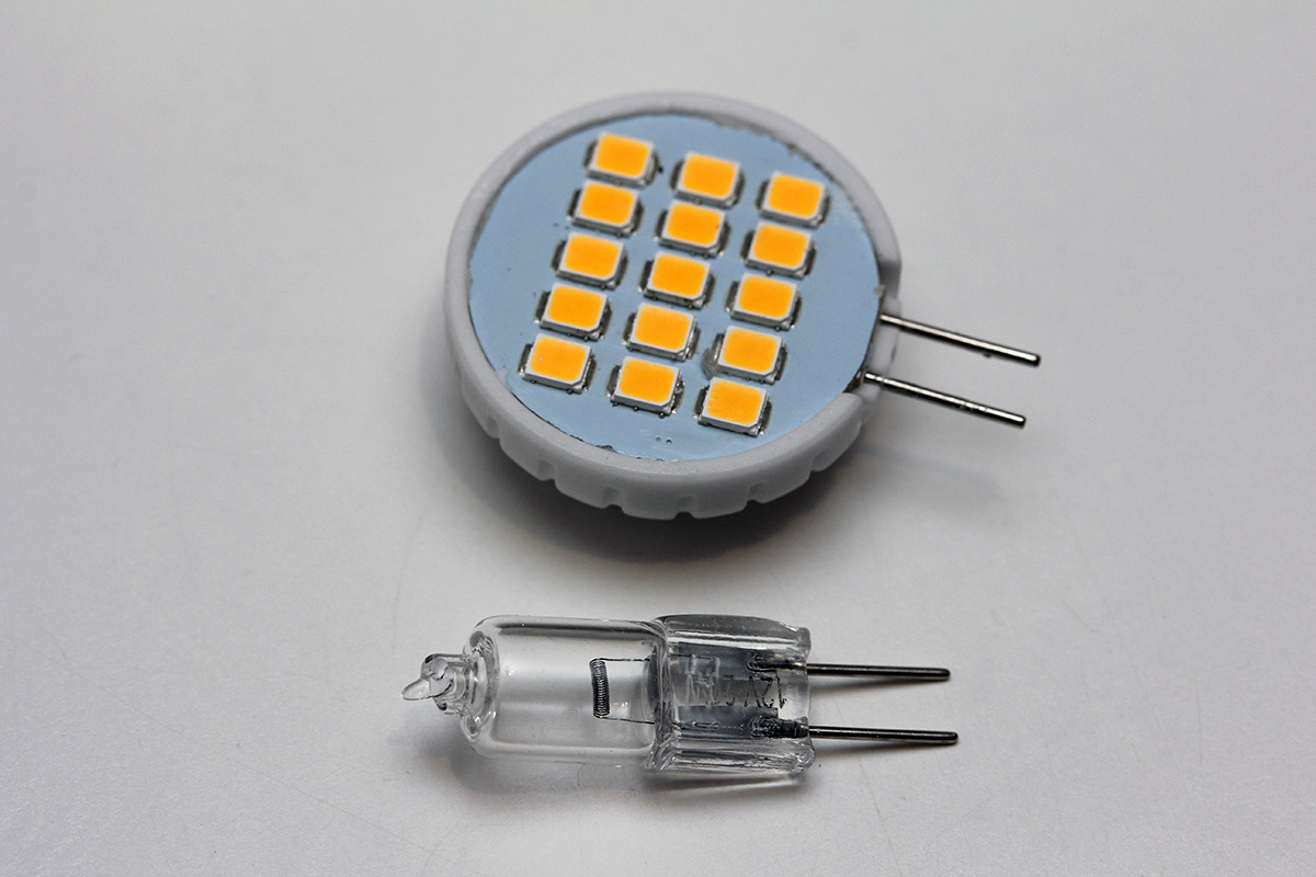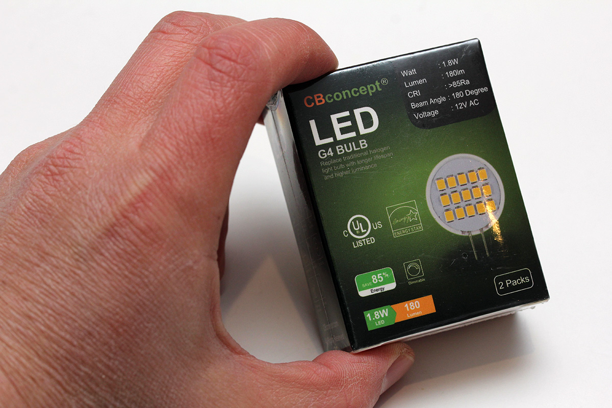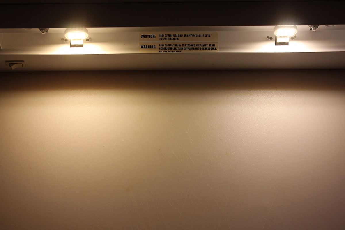 * my cbconcept-brand halogen replacement LED under cabinet light bulbs arrived today. though advertised as dimmable, when i have the lights in the low setting, they're flicker enough to create a strobe effect. in the high setting they're perfectly fine. also one bulb is white while the other is yellow. not worth returning, but it's a $10 lesson: LED bulbs are not designed to be dimmable. not every light needs to be upgraded to LED.