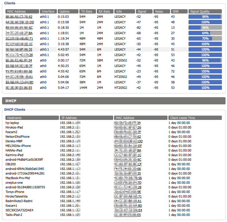one thing we've known about for quite sometime is that the business next door has been secretly pilfering the cafe's free wifi for many years now. we could ban those devices outright but that seems a bit harsh. besides, if they were to come into the cafe and buy something, they'd technically be customers and entitled to the free wifi anyway. another idea is to simply turn off the wifi when the cafe is closed, which hopefully will inconvenience them enough to convince them to get their own (comcast commercial internet access is $80/month which comes out to about $1000/year). unfortunately, after some research, it seems that with the DD-WRT, it's impossible to schedule an automated shut off of the guest wifi without turning off all the wifi including the private wifi. another solution is to have two routers, one private, one public, with the public router switching off the wifi based on a schedule. in the meantime, i can manually disable the guest wifi but it restarts the whole router afterwards. maybe the asus router will do a better job at this and we'll keep it after all.