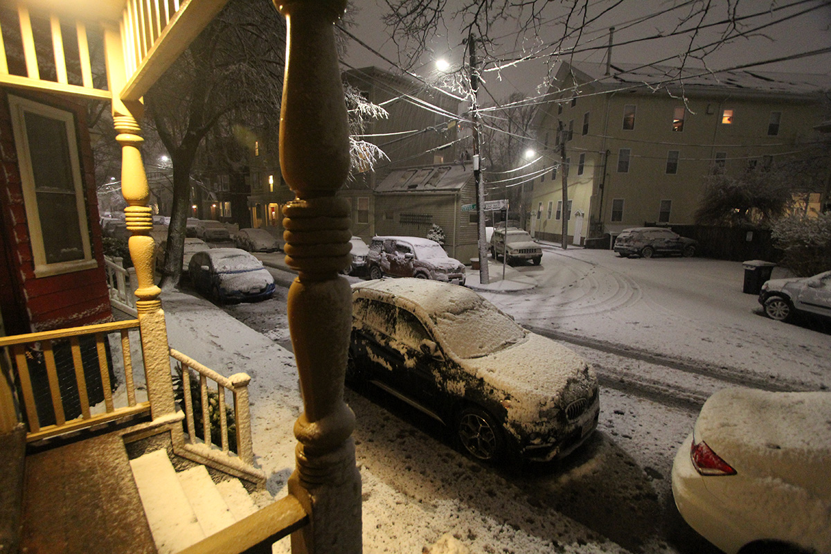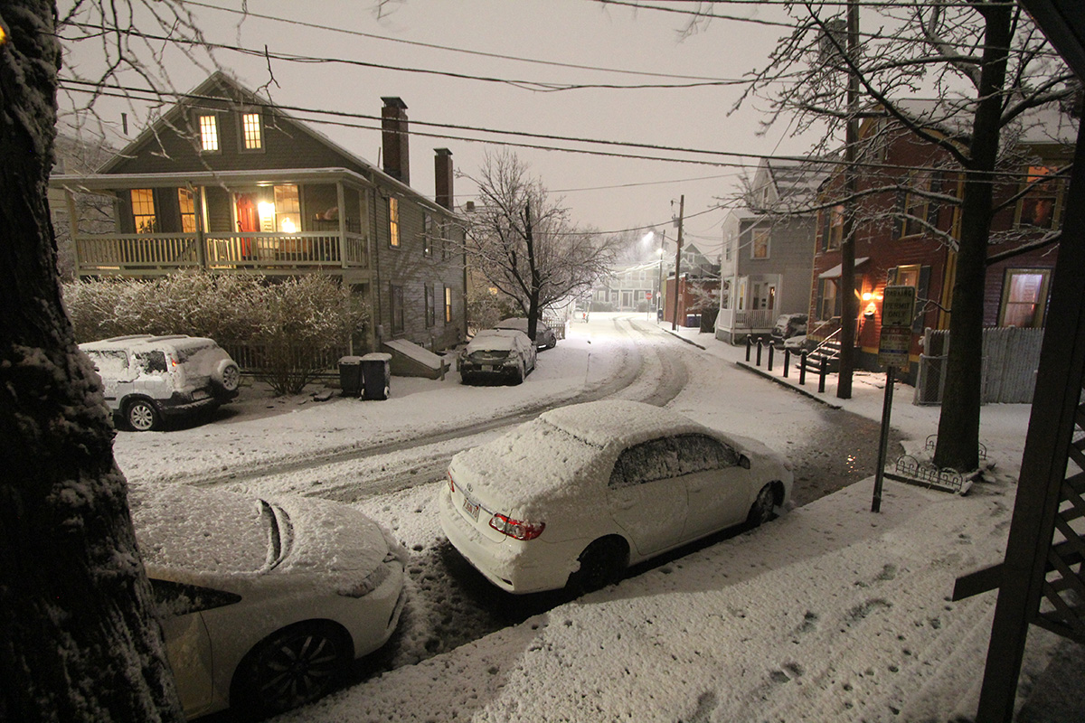 feeling hungry, i warmed up a can of clam chowder for an early dinner around 4pm. later in the evening i had some instant korean ramen. basically i didn't eat anything today that didn't either come in a cup or a can. around 9pm i finally took a peek outside and saw a layer of wet sticky snow everywhere, with more to fall overnight. in terms of timing the brunt of the snowstorm will be overnight, while everyone is asleep. tomorrow morning will be a little challenging as people dig out their cars to go to work. as for me, i have a busy day scheduled: shovel my house, shovel the cafe, shovel my parents' place, shovel my aunt lili's place in arlington, clean the snow from the solar panels, and defrost the cafe freezer. i expect to be in a lot of pain by tomorrow night.