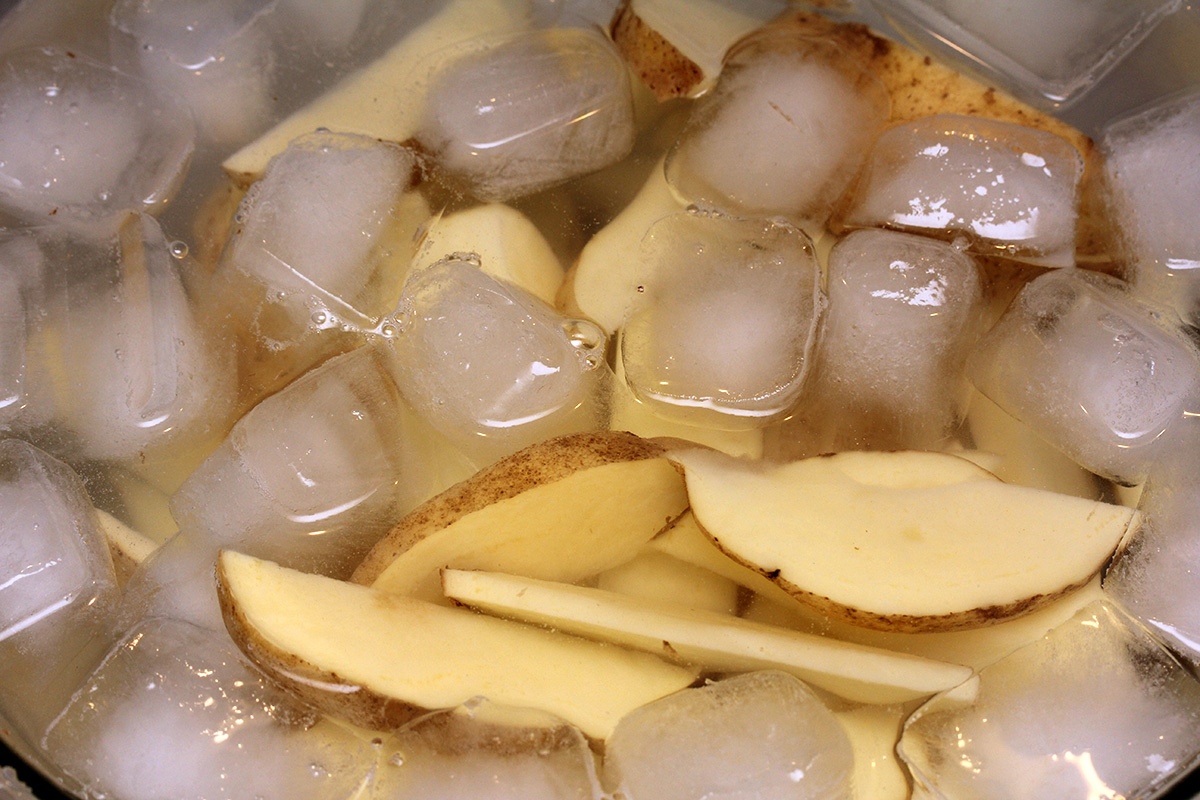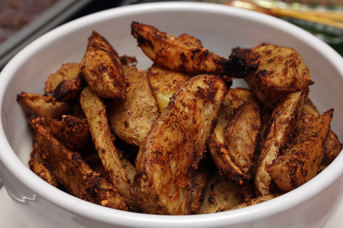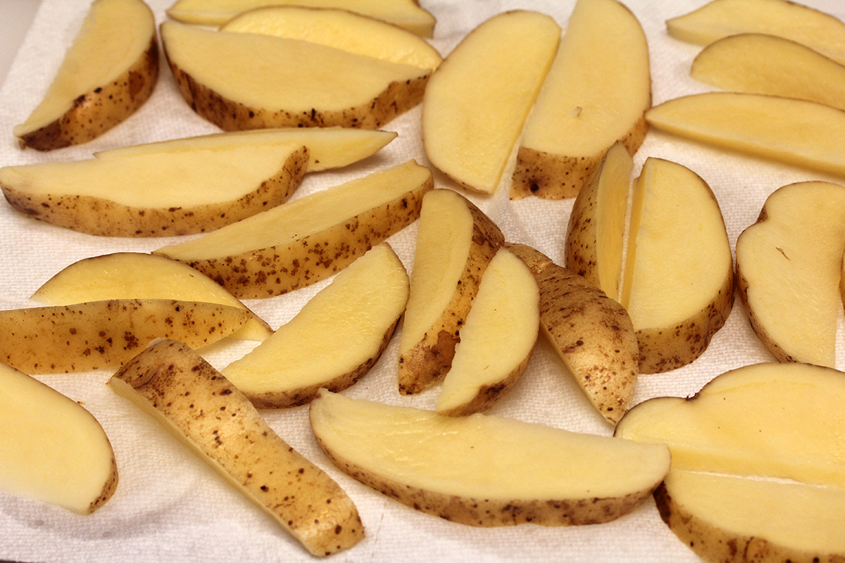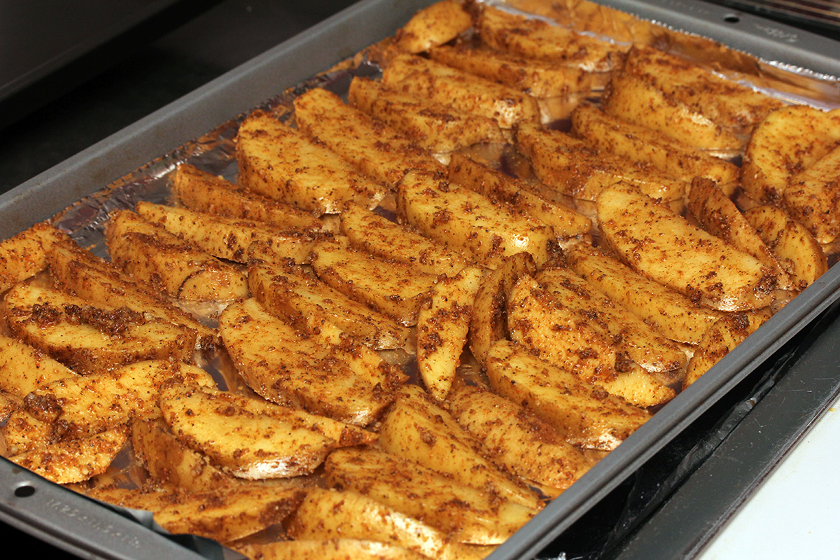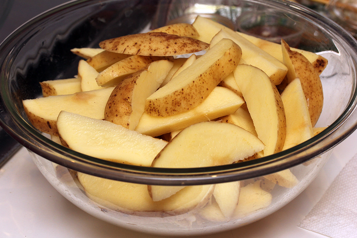 that satay chicken i had for a late lunch was so filling that i wasn't hungry for the rest of the day. in the evening however i made some baked potato wedges. i made it last fall but forgot about it, until i saw the potatoes on sale and rediscovered the recipe. it involves a 30 minute ice bath, following by 45 minutes at 450°F in the oven, flipping them at the midway point. i didn't eat until after 10pm. i used some of the leftover peanut and fish dipping sauce from the satay chicken.